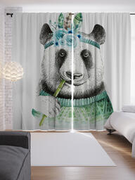 Шторы с фотопечатью "Крутышка панда" из сатена, 290х265 см