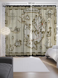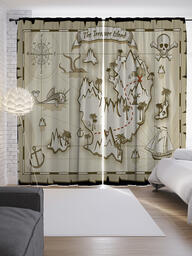 Шторы с фотопечатью "Остров сокровищ" из сатена, 145x265 см