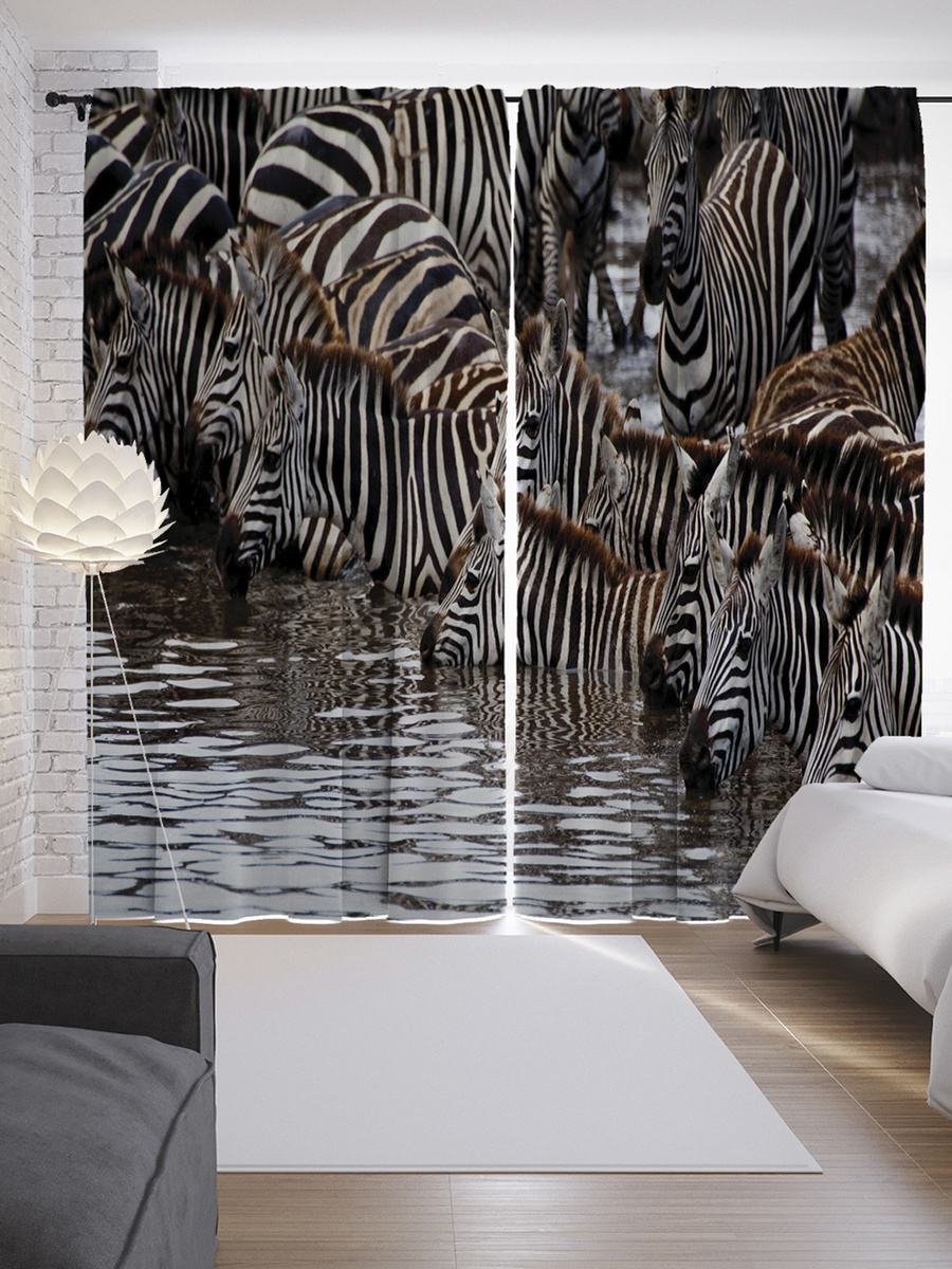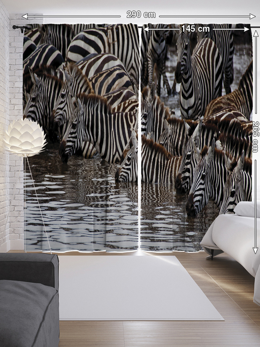 Шторы с фотопечатью "Зебровое купание" из сатена, 290х265 см
