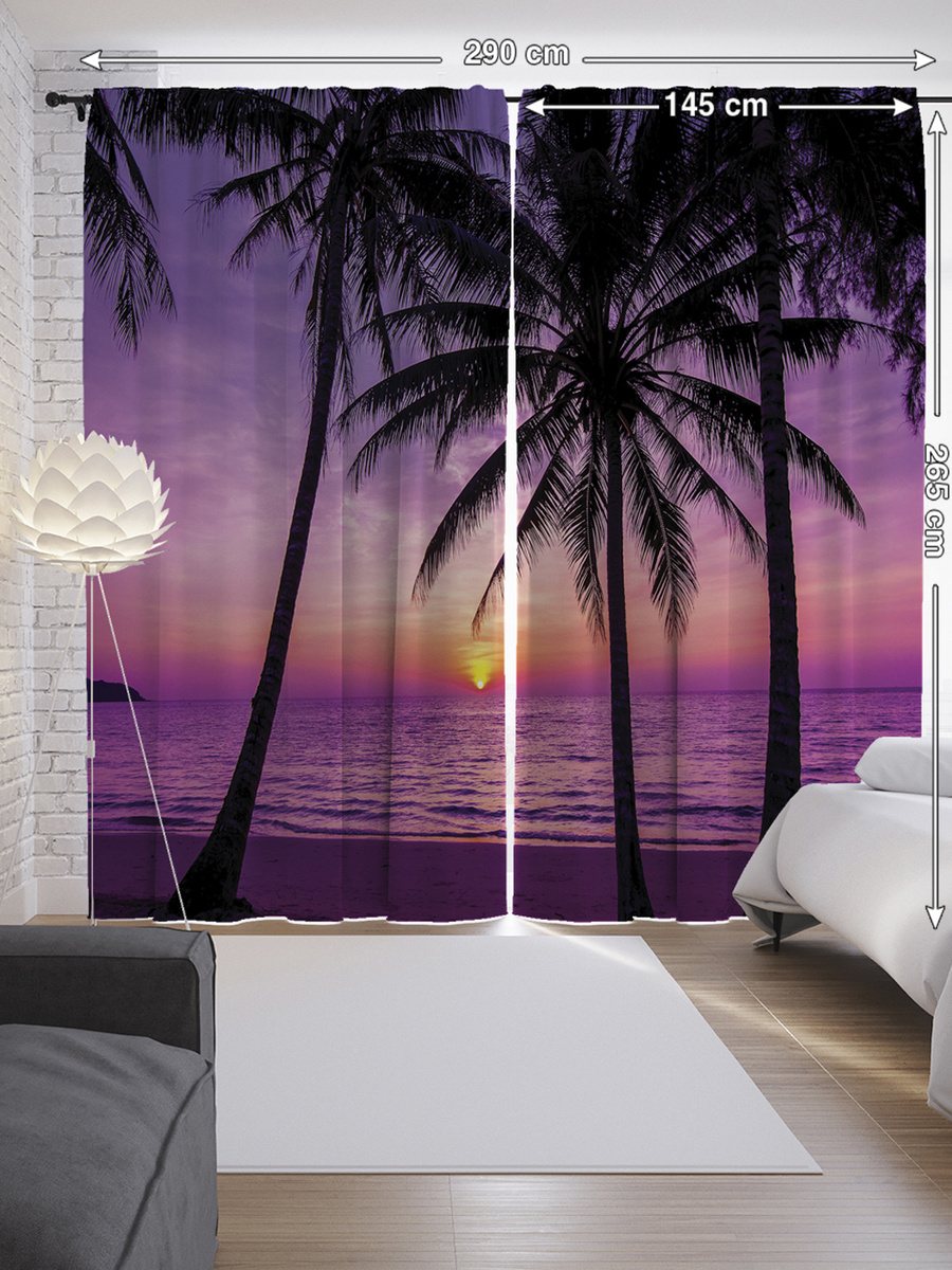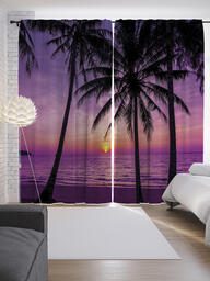 Шторы с фотопечатью "Закат на пляже под пальмами" из сатена, 145x265 см