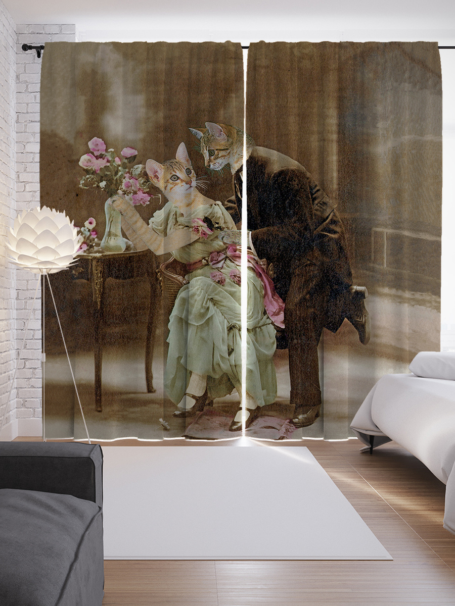 Шторы с фотопечатью "Кошачьи нежности" из сатена, 290х265 см
