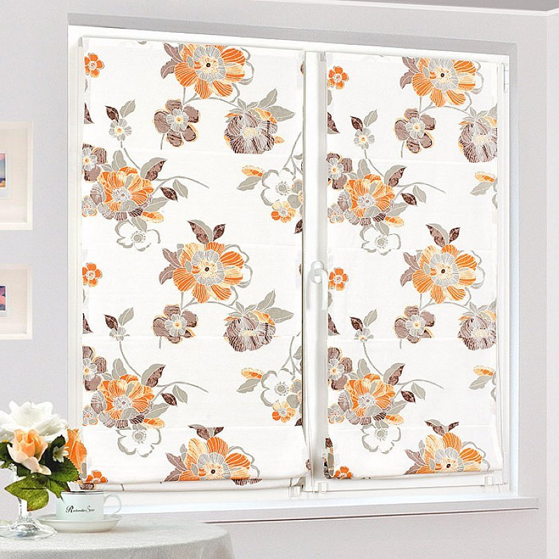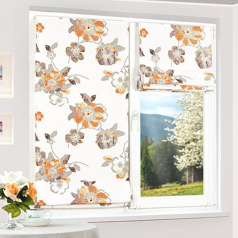 Римская штора мини "Бремен Цветочный, Оранжевый", ширина 52