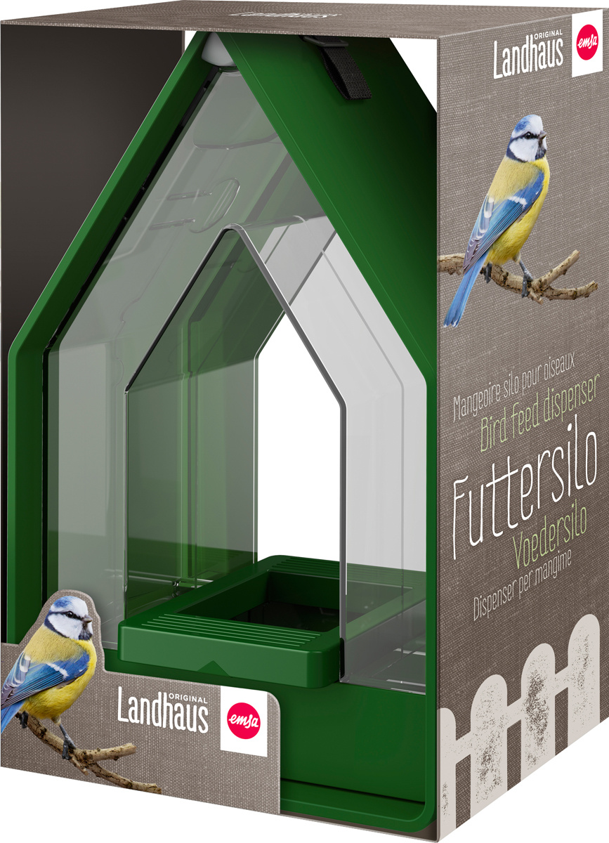 Кормушка для птиц Emsa "Landhaus", с диспенсером, цвет: темно-зеленый, 14 x 21 см