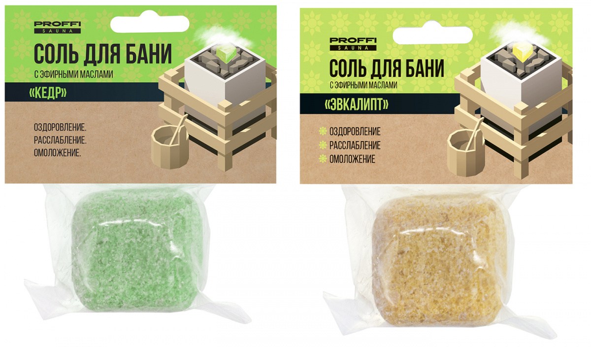 Proffi Sauna Соль для бани с натуральными маслами кедра и эвкалипта (комплект из 2-х кубиков)