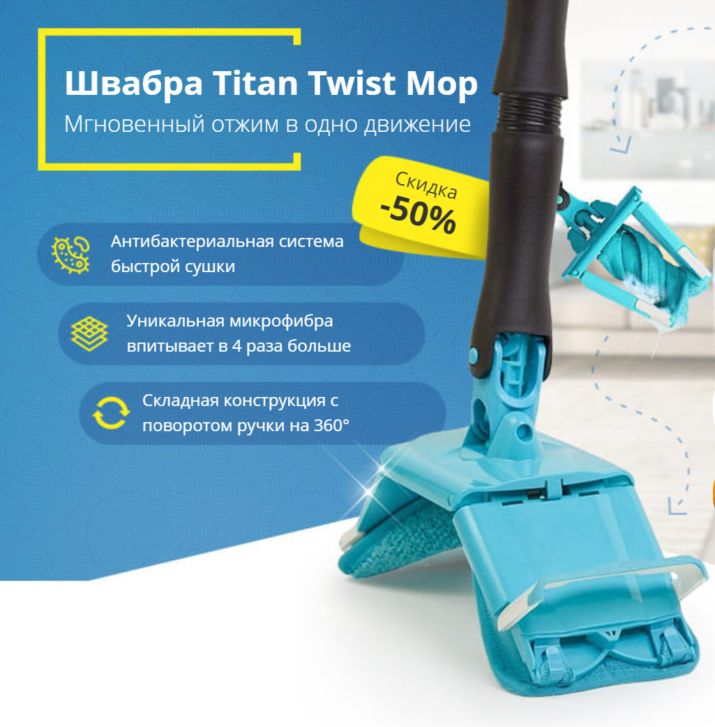 Швабра Twist Titan микрофибра с отжимом вращением 360