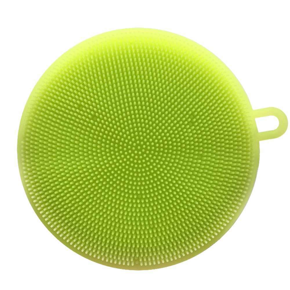 Силиконовая губка для мытья посуды, силиконовые ворсинки, круглая двусторонняя резиновая губка, резиновая мочалка, салатовая, диаметр 10, 5 см.