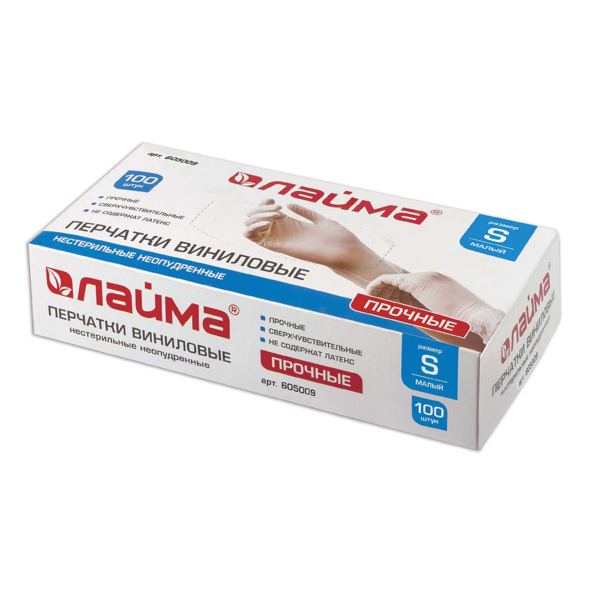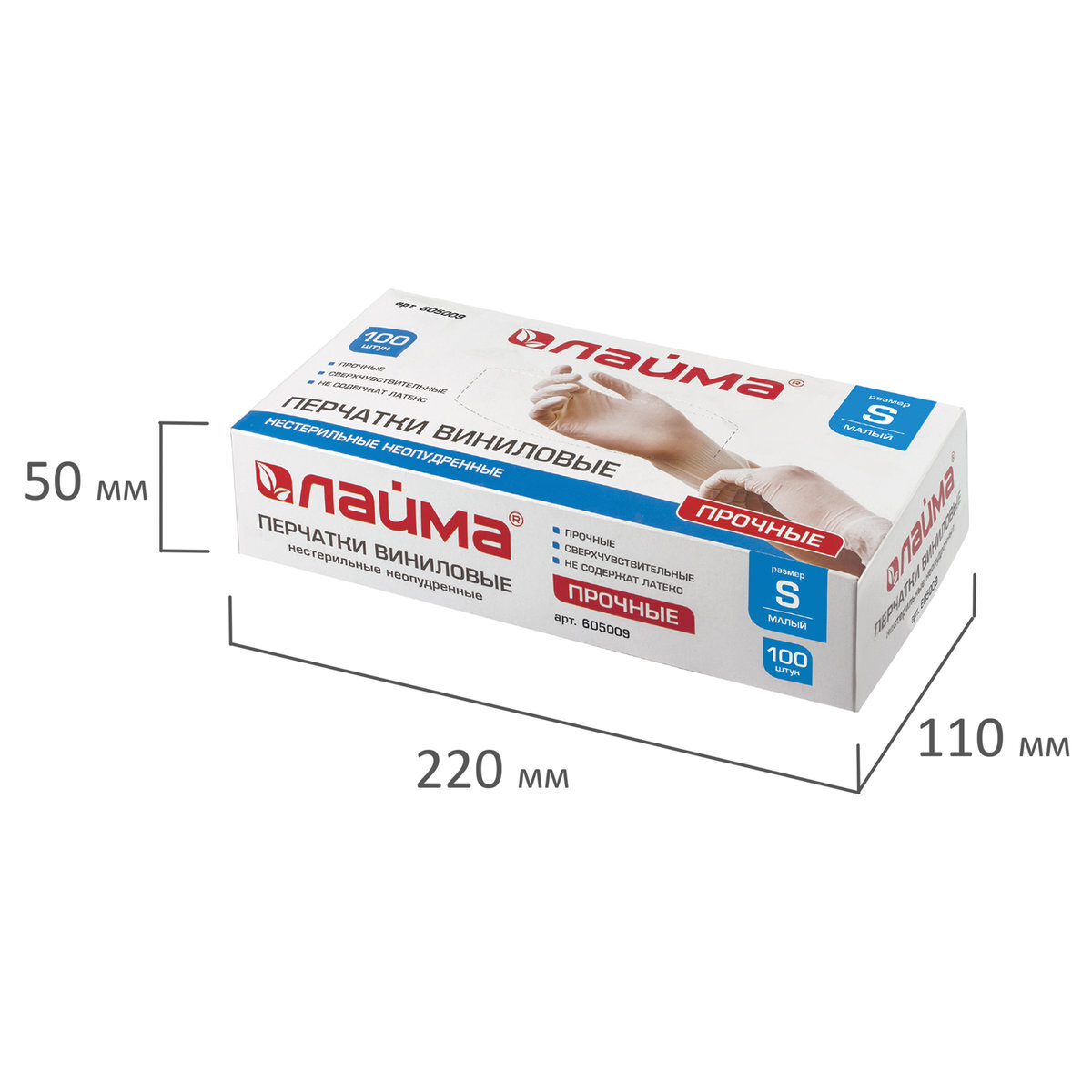 Перчатки виниловые белые, 50 пар (100 штук), неопудренные, прочные, размер S (малый), Лайма, 605009
