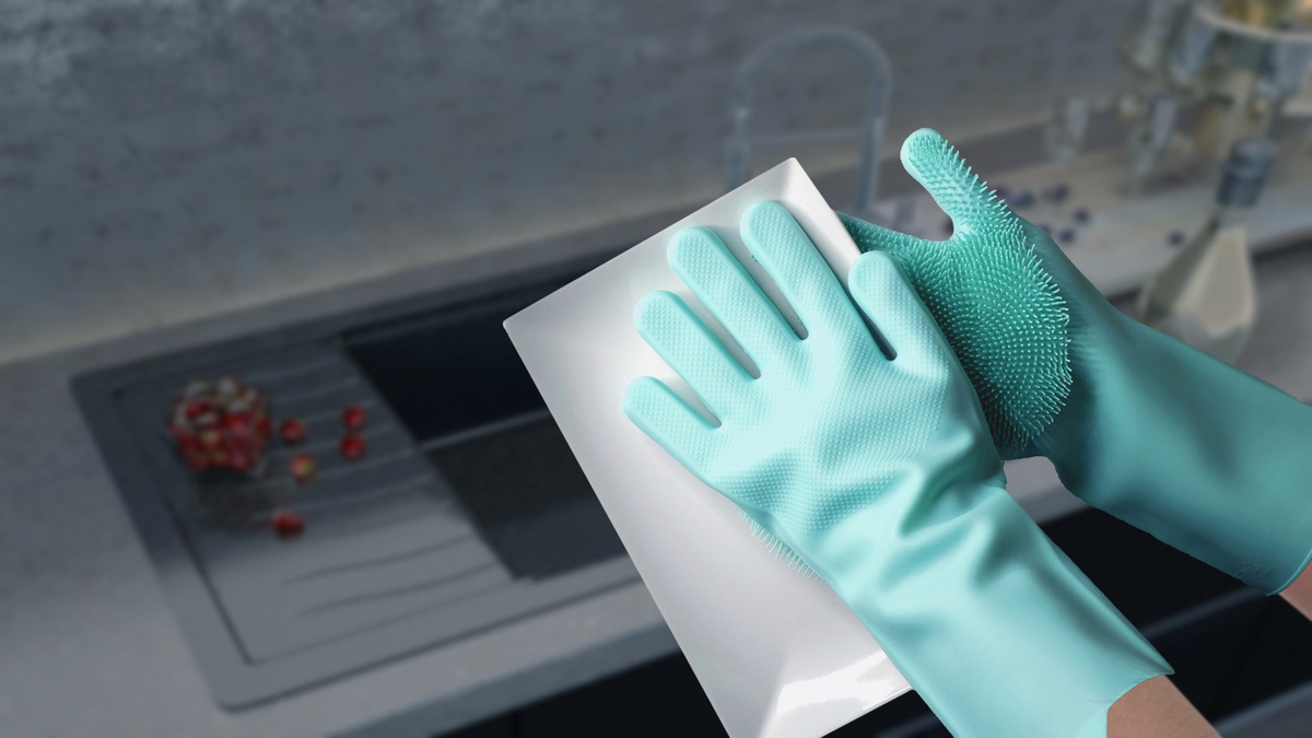 Перчатки силиконовые для мытья посуды Wash Hands универсальные термостойкие с щеточками серые