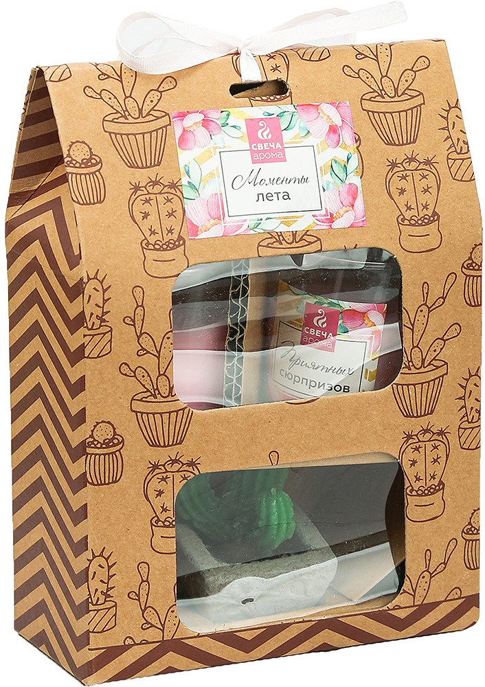 Набор свечей "Моменты лета", с кактусом, светло-розовый, высота 7,3 см, 2 шт
