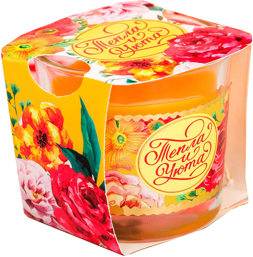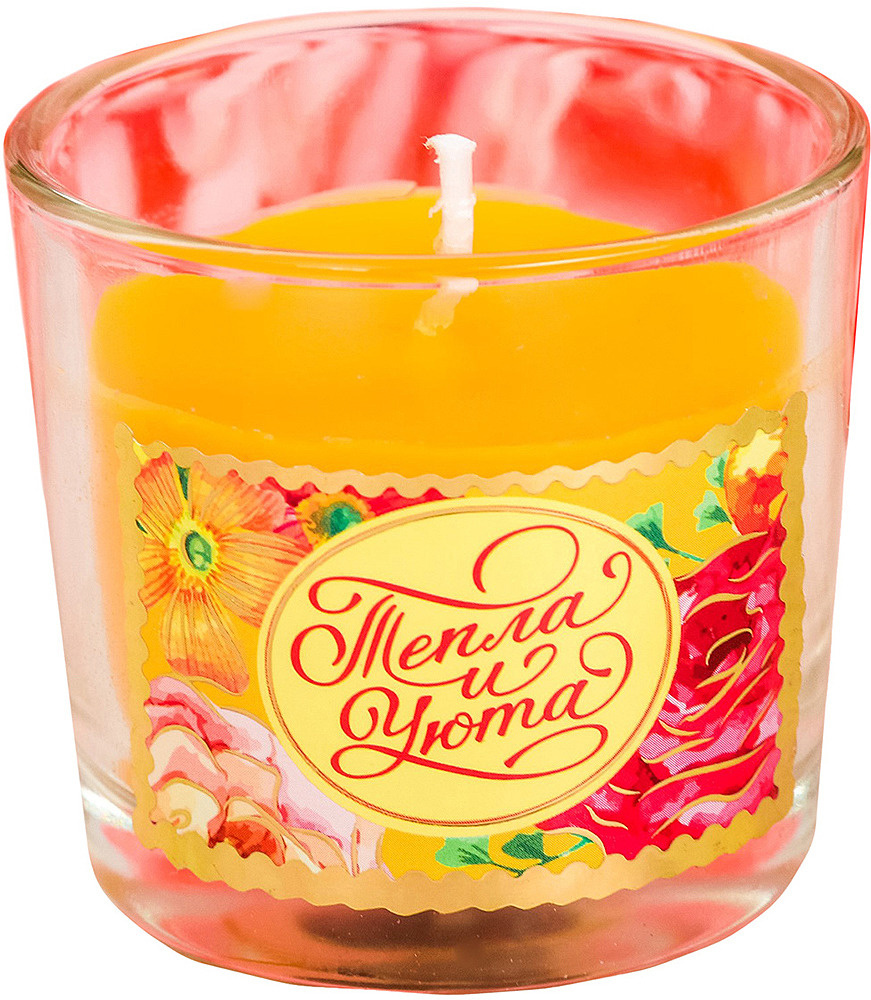 Свеча ароматизированная "Тепла и уюта", в стакане, желтый, высота 5 см