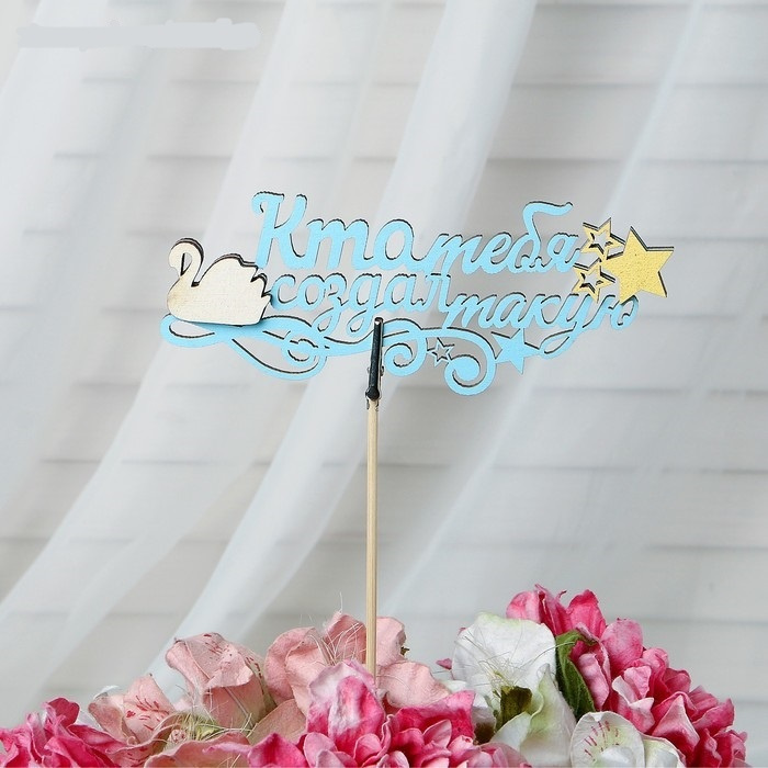 Топпер-магнит шпажка с зажимом "Кто тебя создал такую", в упаковке, голубой, 15х7 см