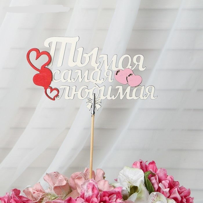 Топпер-магнит шпажка с зажимом "Ты моя самая любимая", в упаковке, белый, 15х7 см