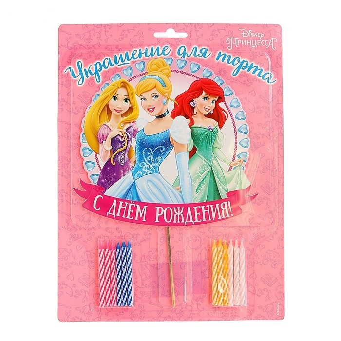 Набор для украшения торта, Принцессы (свечи и топпер)
