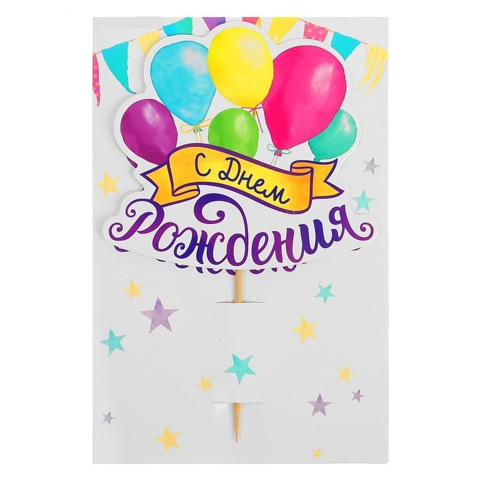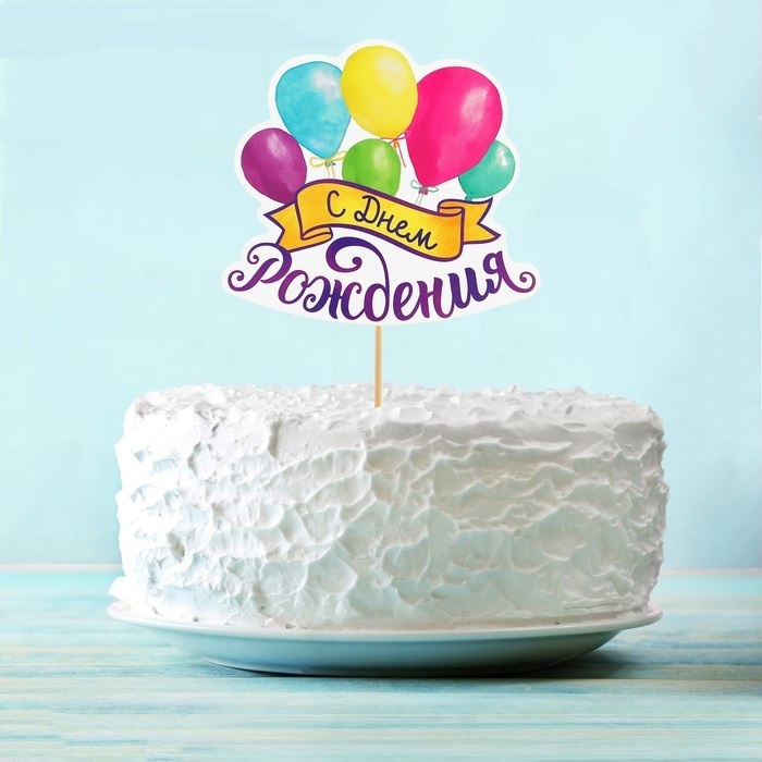 Топпер в торт с пожеланием "С Днём рождения", шарики