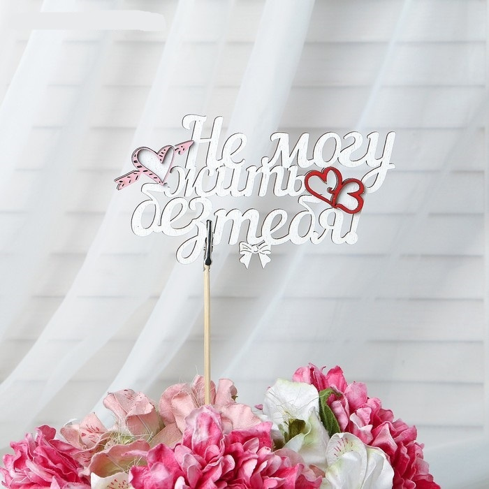 Топпер-магнит шпажка с зажимом "Не могу жить без тебя", в упаковке, белый, 15х7 см
