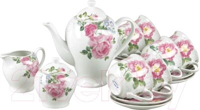 - В наборе чашка, блюдце, чайник, сахарница, молочник