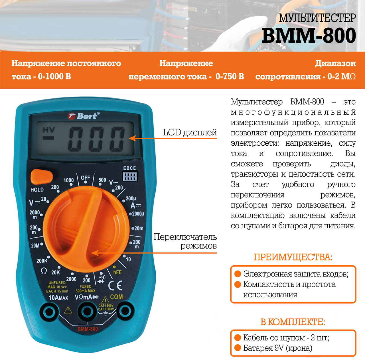 Мультиметр цифровой Bort BMM-800 (91271150)