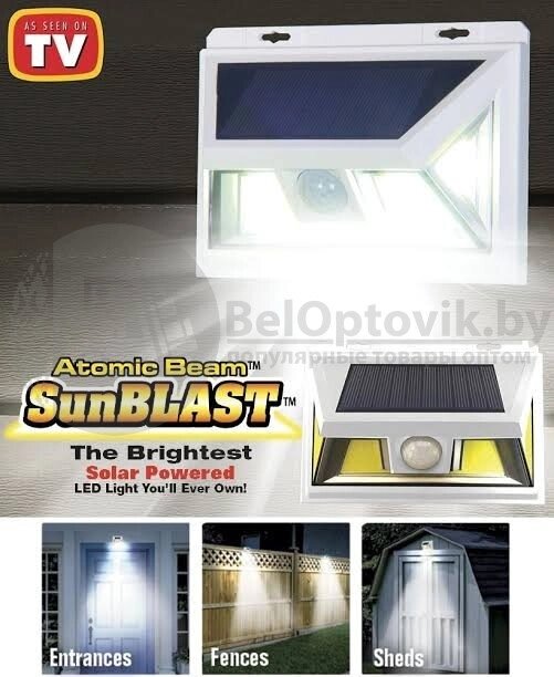 Уличный светодиодный светильник на солнечной батарее с датчиком движения ATOMIC Beam SunBlast, 74 LED, 2