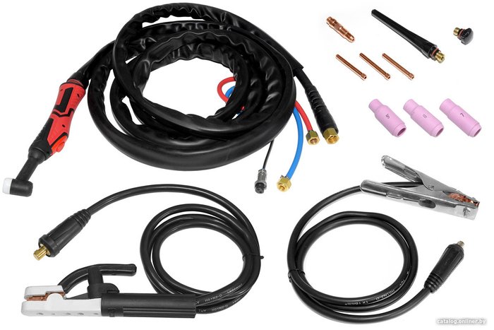 Комплект поставки- Инверторный сварочный аппарат- Кабель с клеммой заземления, 2 м- Кабель с электрододержателем, 2 м- Горелка с водяным охлаждением WP-18, 4м- Комплект ЗИП к горелке- Руководство по эксплуатации