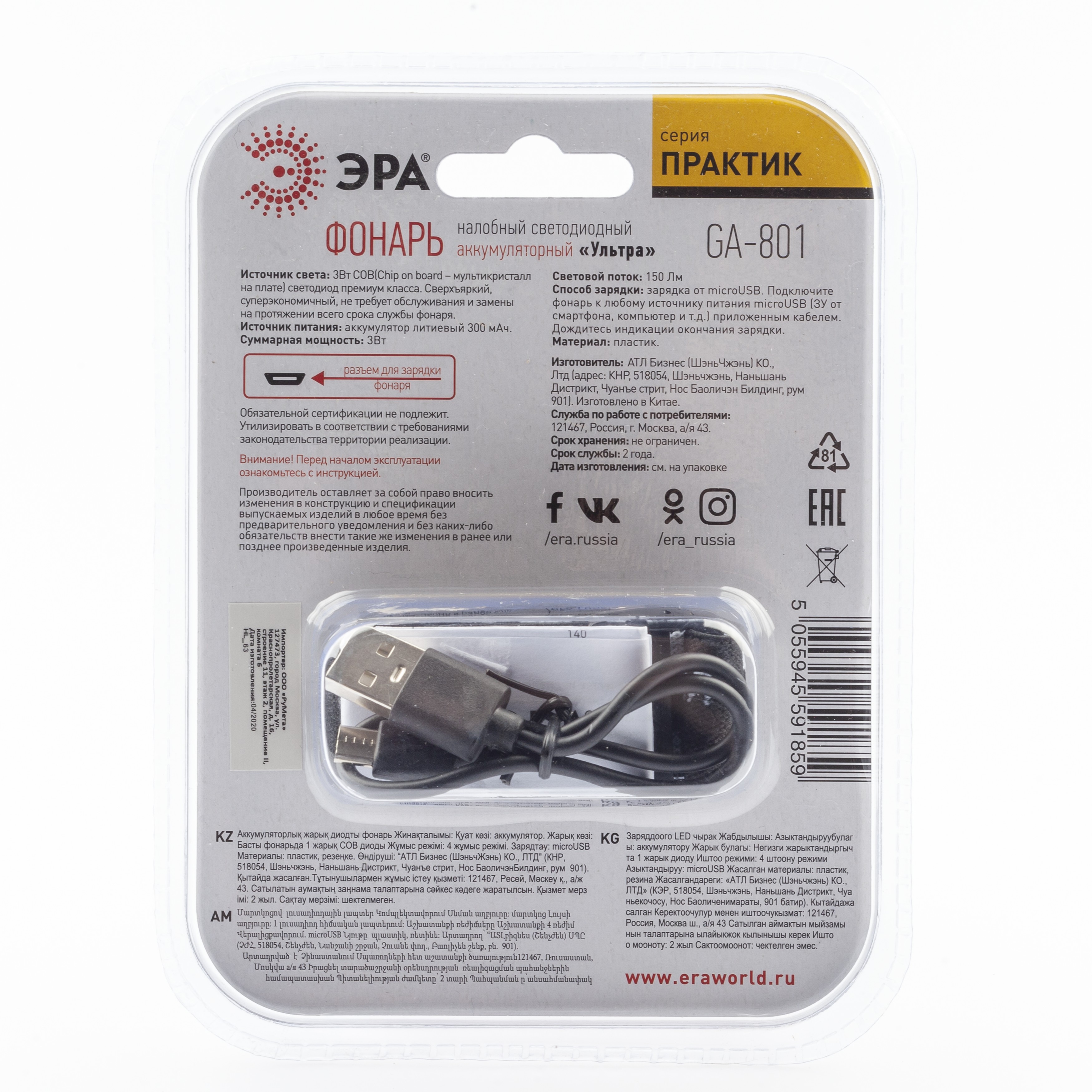 Фонарь налобный светодиодный ЭРА Рабочие Практик GA-801 аккумуляторный мощный яркий 4 режима желто-черный