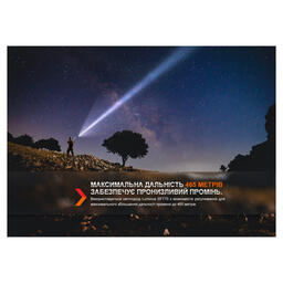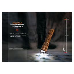 Цветовая температура генерируемого луча равна 6500К. Холодный белый свет характеризуется увеличенной дальнобойностью, которая в данной модели достигает почти полкилометра. Fenix TK20R UE имеет несколько полезных опций. Среди них есть защита от перегрева.