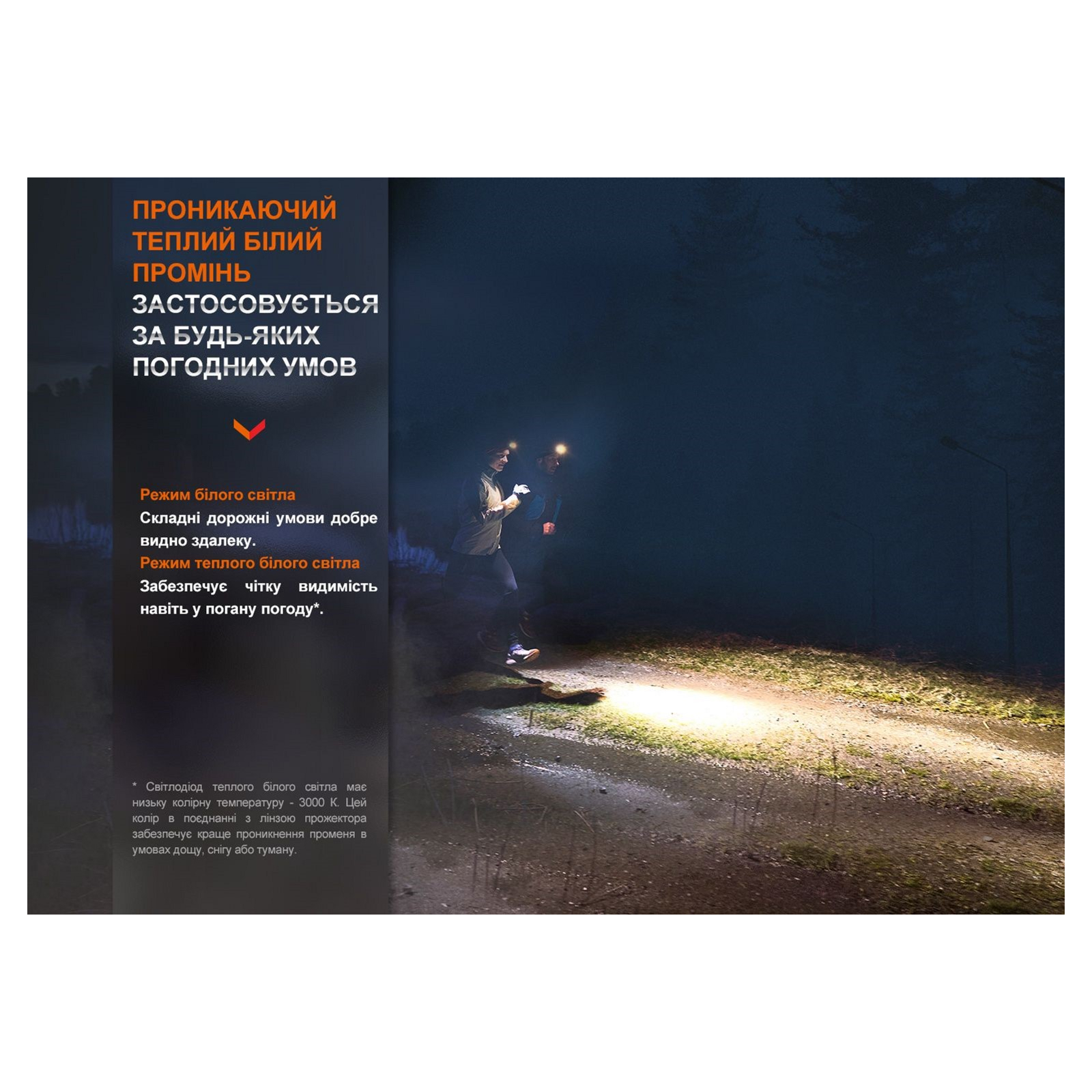 Функциональный налобный фонарь для бега и активного отдыха; тип светодиодов – Luminus SST40 (6500К) + Luminus SST20 (3000К);