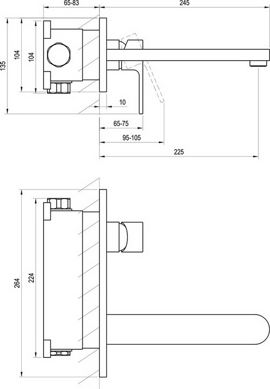 Смеситель для умывальника Ravak Chrome CR 019.20, настенный монтаж, черный, X070430