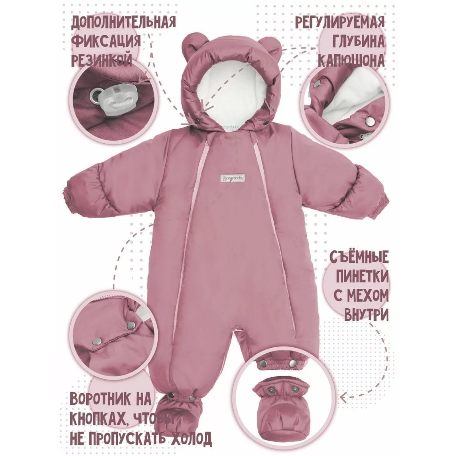 Комбинезон-трансформер зимний детский, рост 80 см, цвет розовый