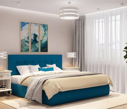 Длина спального места, мм: 2000, Ширина спального места, мм: 1600, Цвет обивки: синий, Материал обивки: велюр, Материал корпуса: ДСП, оргалит, Художественное описание товара: Передняя часть кровати закрывается противопыльным матерчатым коробом из плотного спанбонда. Матерчатый короб фиксируется в подматрасном пространстве с помощью системы ленты-липучки 'HOOK&LOОP' Задняя стенка изголовья обшита спандбондом. Кровать укомплектована ортопедическим матрасом Профи АСТРА. Кровать Селеста с высоким оригинальным изголовьем и подъемным механизмом имеет рельефную мягкую спинку с неглубокими стяжками, которые придают особую изысканность изголовью. Обивка изголовья и весь периметр кровати выполнен из мебельной ткани – велюр. Это уникальный материал, который получается за счет сплетения пяти волокон одновременно. Ткань износостойкая, легко чиститься от загрязнений (влажной тряпочкой, любыми средствами, кроме средств с растворителями), практичная, эластичная, устойчивая к ультрафиолету. Кровать оборудована удобным подъемным механизмом. Подъемный механизм с гнутоклееными ортопедическими основаниями поднимает кровать под углом 45 градусов. Безопасное противоударное скругление в ножной спинке является весьма актуальным и взрослым и детям. Газлифты повышенной мощности позволяют поднимать и опускать ортопедическую рамку с матрасом без всяких усилий., Дополнительные параметры: Состав слоев:, 1. Классический несъемный чехол жаккард стеганый на синтепоне., 2. ППУ 15мм (с каждой стороны)., 3. Настил из усиленного кокосового волокна, h=5мм (с каждой стороны)., 4. Блок независимых пружин Pocket Spring 500 шт на спальное место, h=120мм., 5. Высота 17 см., 6. Жесткость мягче средней.