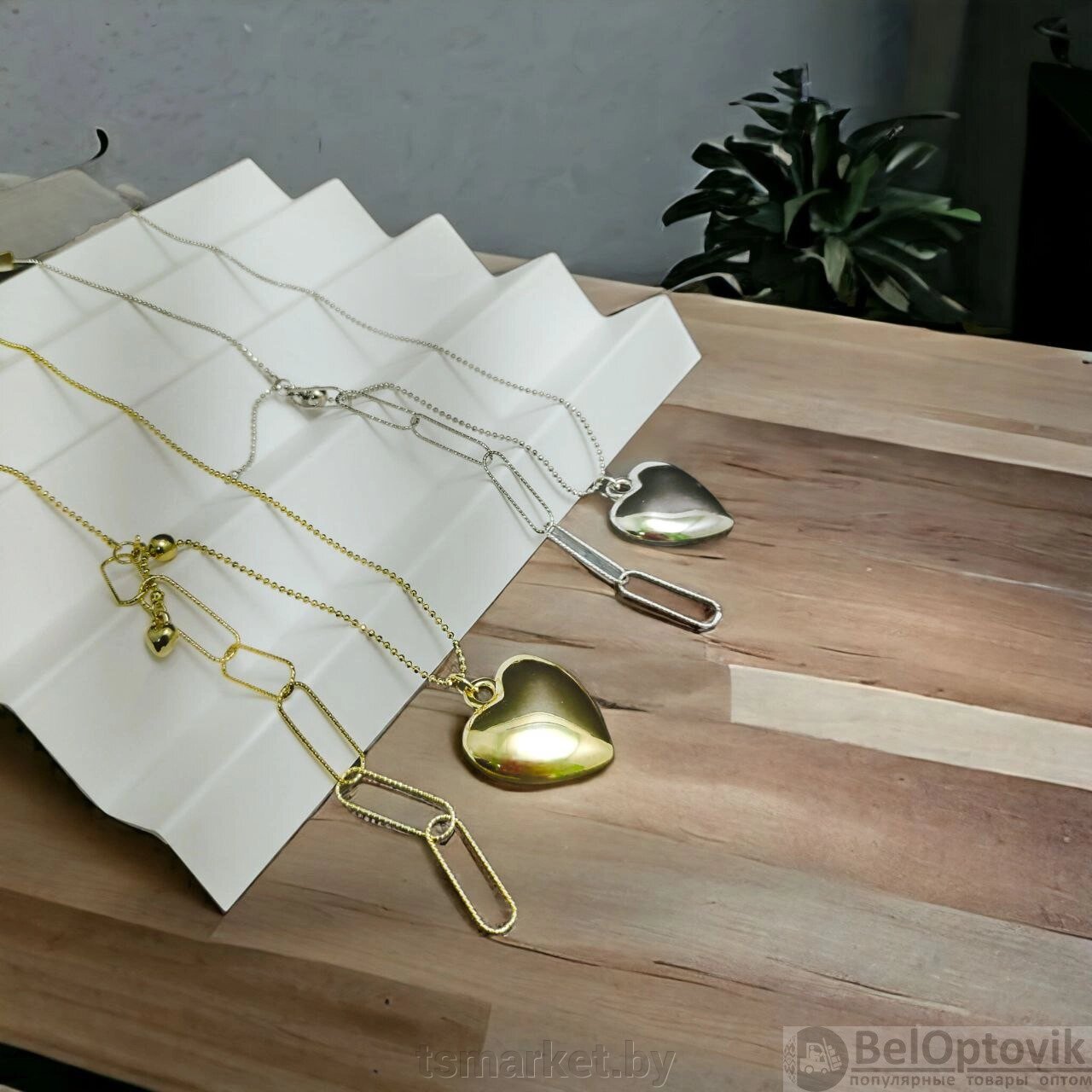 Подвеска "Сердце" на цепочке из скрепок / Кулон на цепочке / Украшение женское на шею