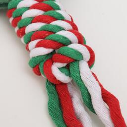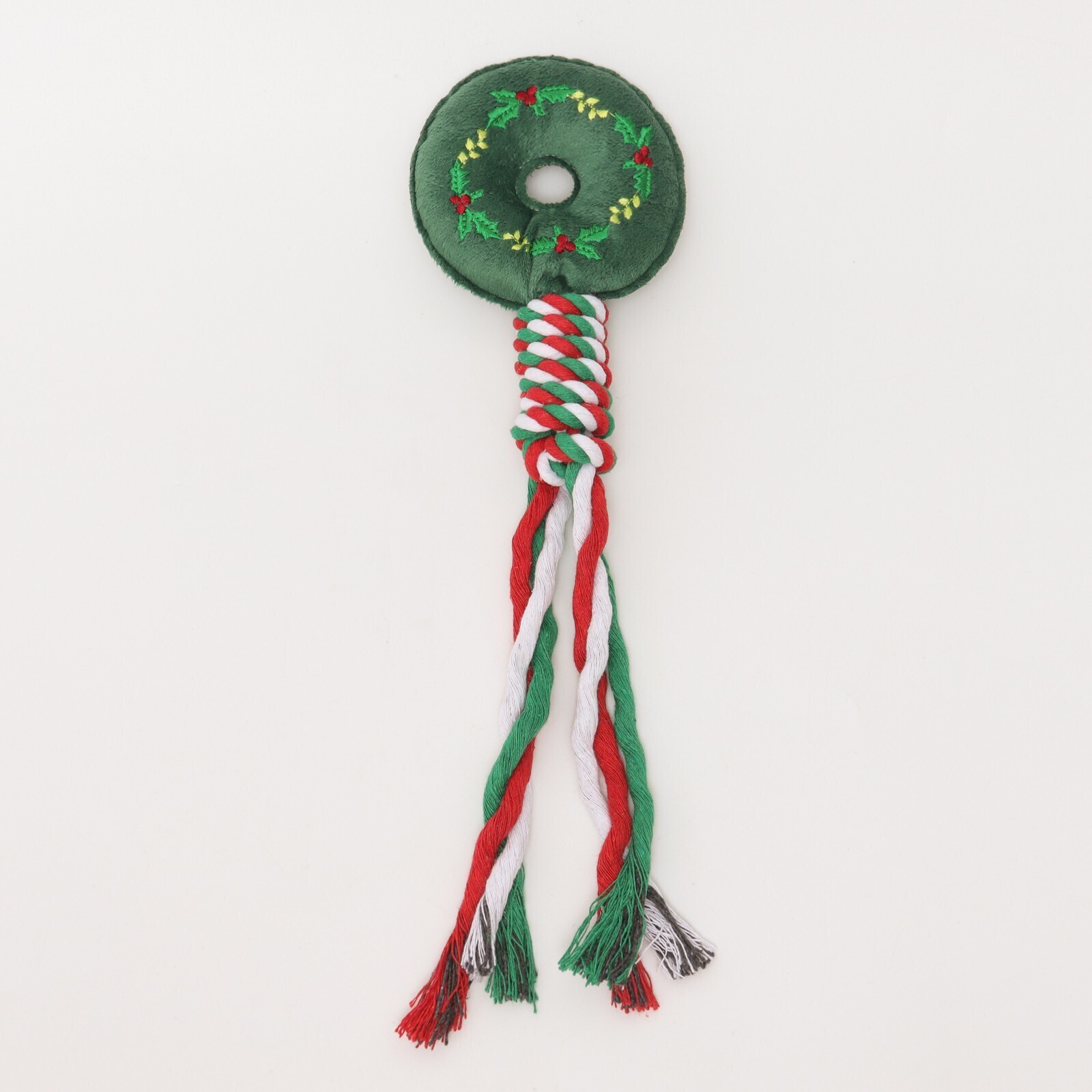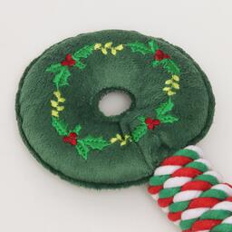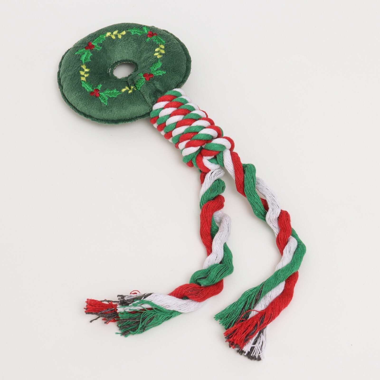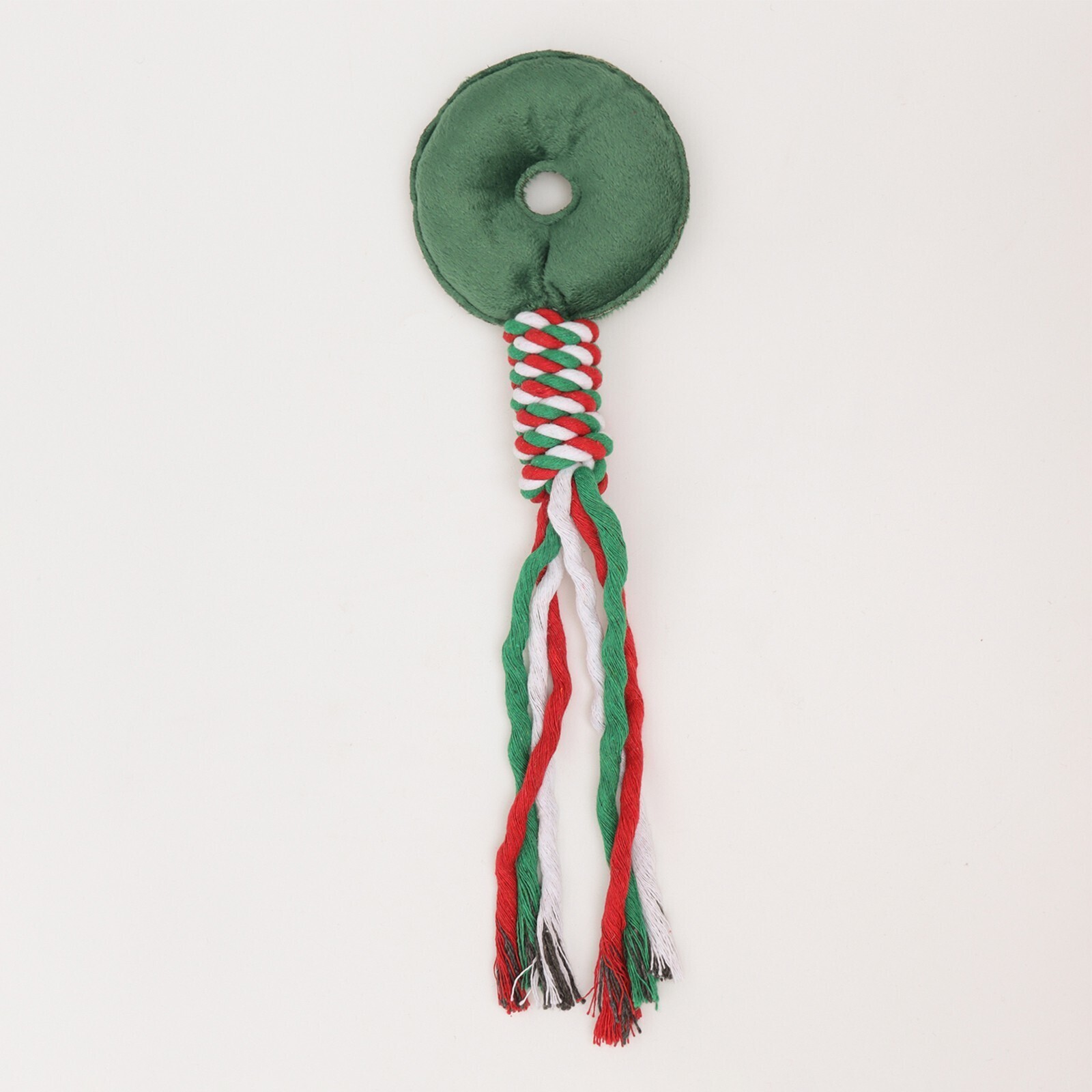 Игрушка пищащая, мягкая для собак "Новогодний пончик" с канатом, 32 см