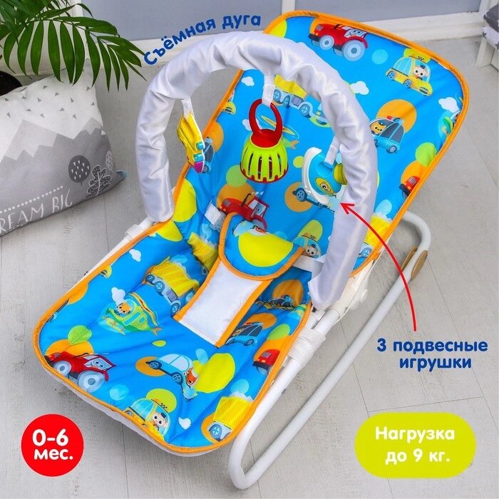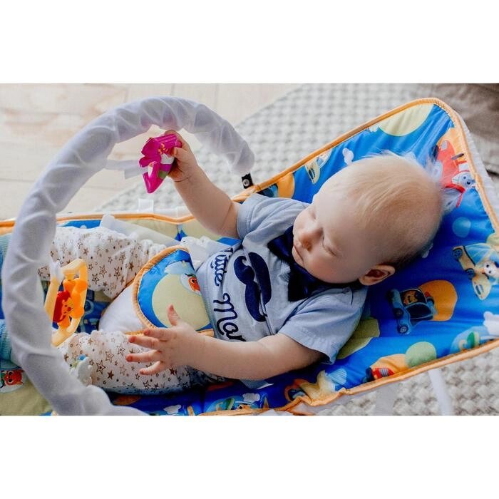 Шезлонг - качалка для новорождённых "Транспорт", игровая дуга, игрушки МИКС