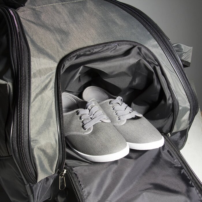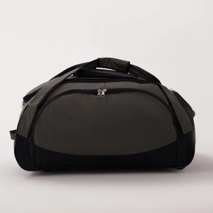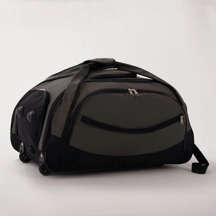 Сумка дорожная на колёсах, 3 наружных кармана, карман для обуви, цвет чёрный/хаки