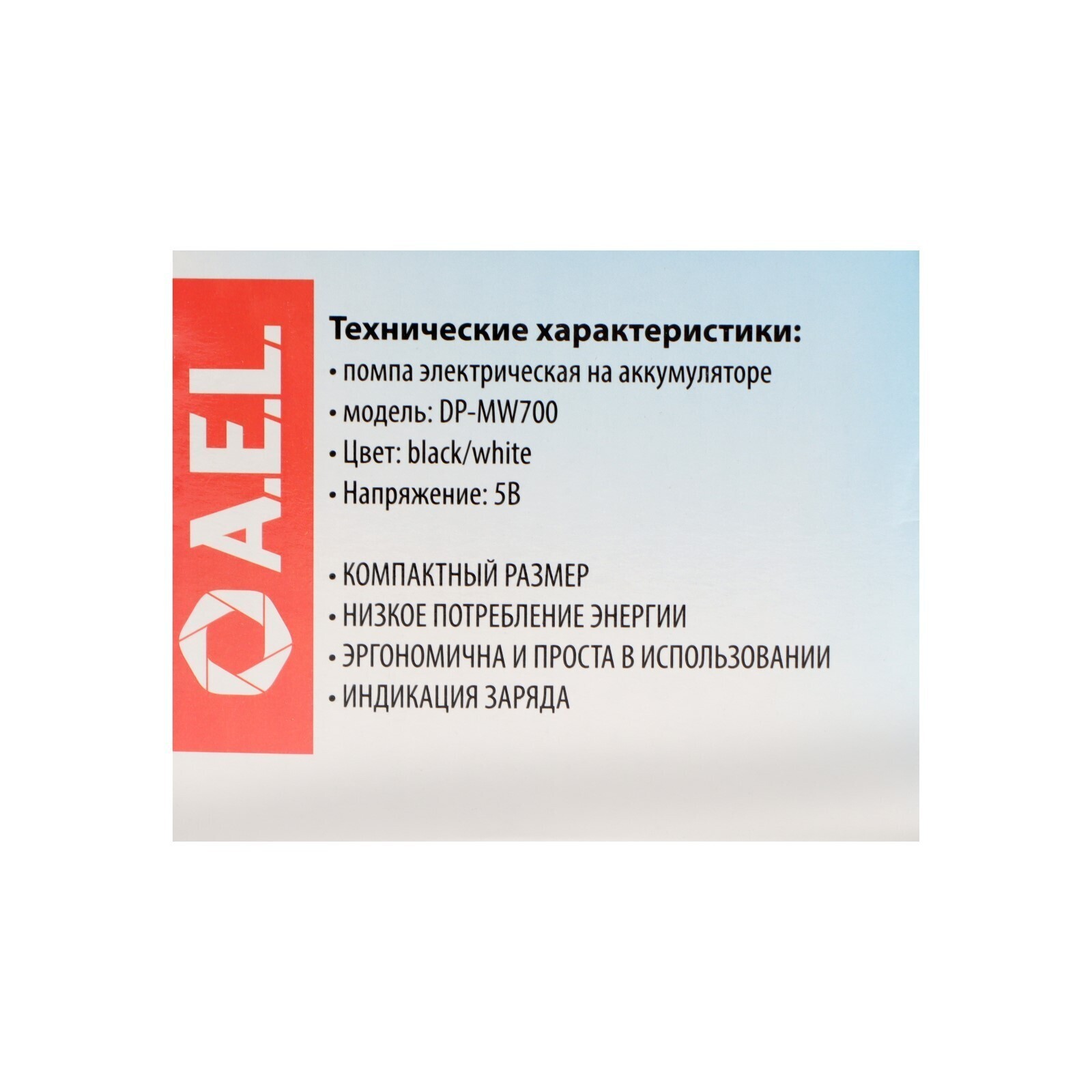 Помпа для воды AEL DP-MW700, электрическая, 1.2 л/мин, 1200 мAч, от USB, чёрно-белая