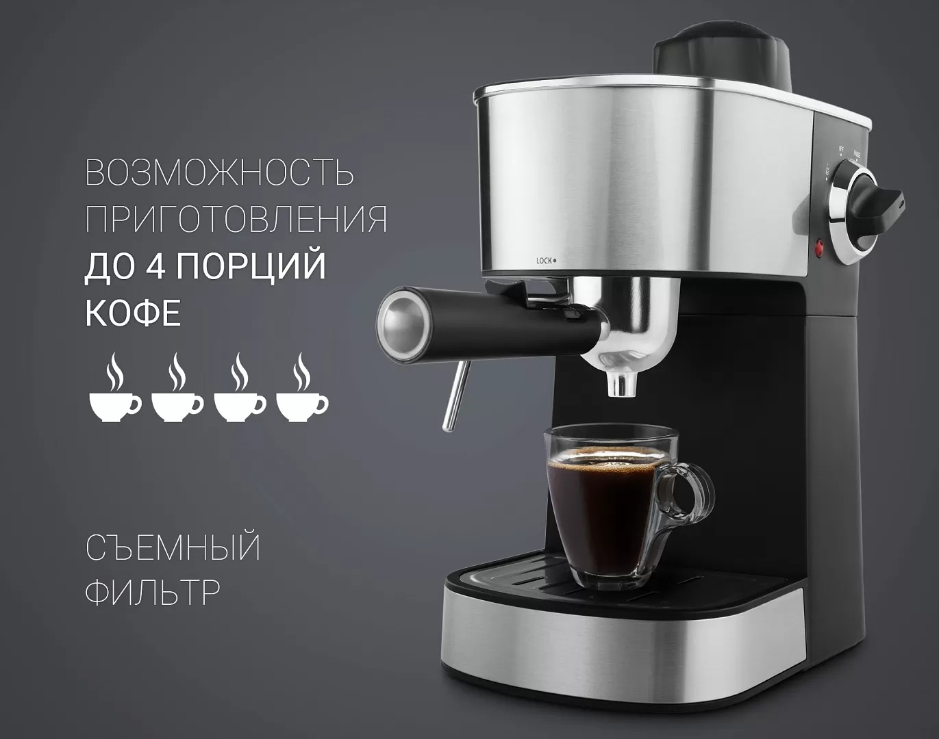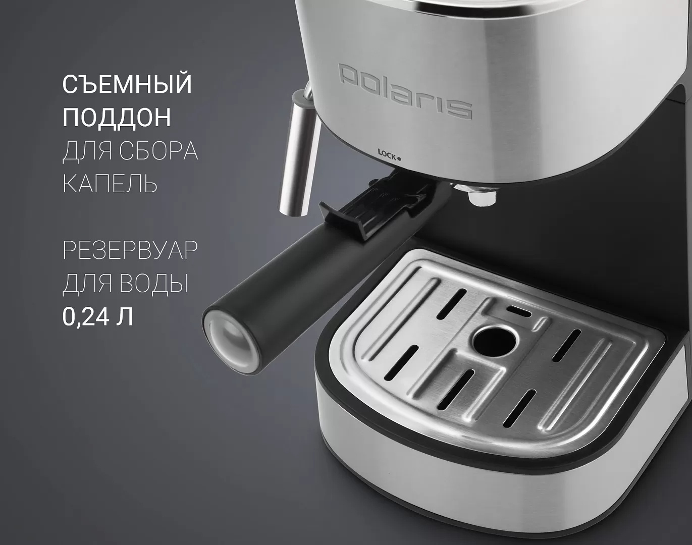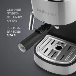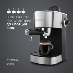 Кофеварка рожковая Polaris PCM 4009 800Вт нержавеющая сталь