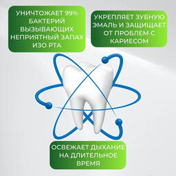 • Активные ингредиенты тимол, фторид натрия, ментол, эвкалиптол, сорбитол