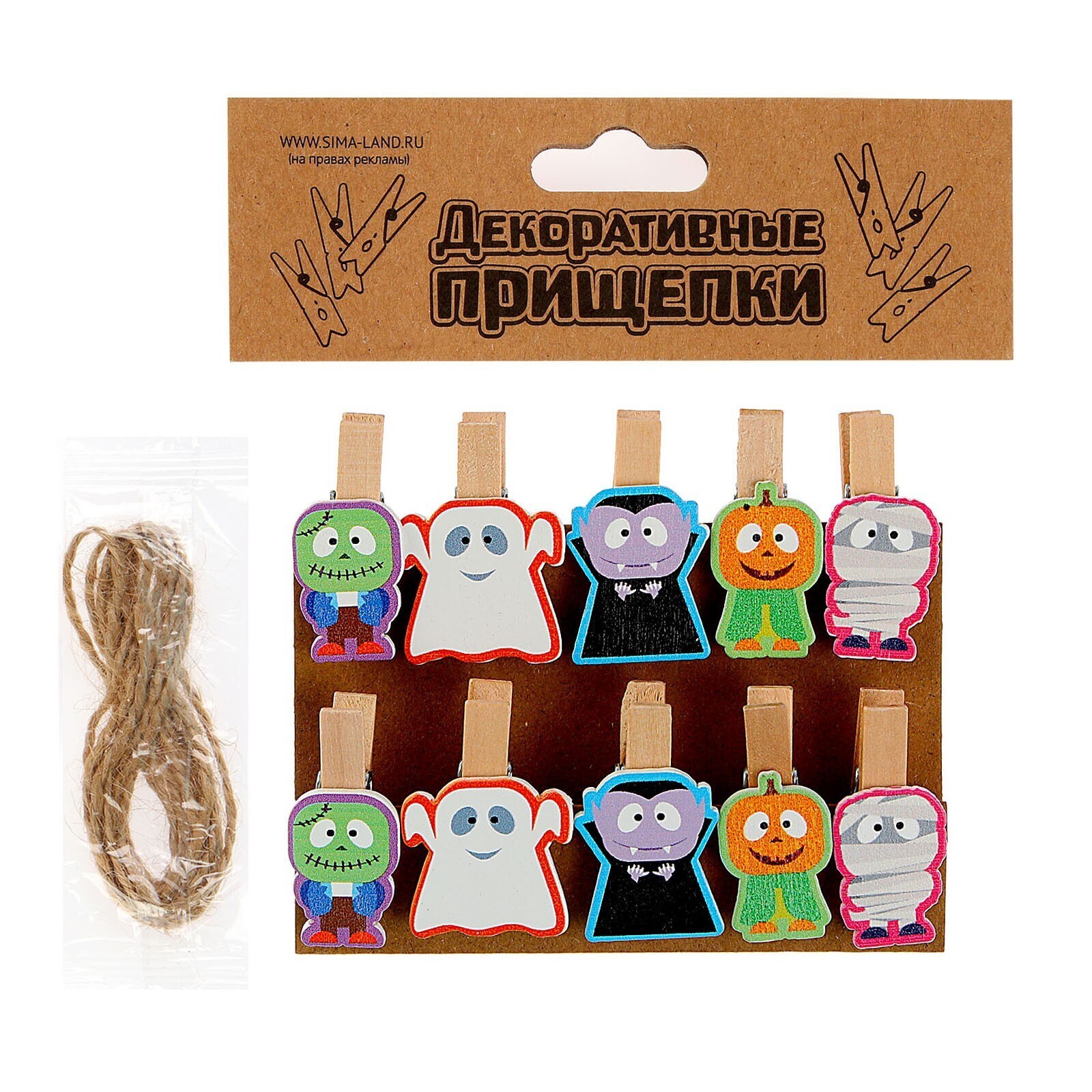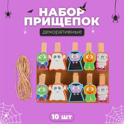 Прищепки декоративные с верёвкой для подвеса «Монстирики» набор 10 шт., 1,5 × 12 × 14 см