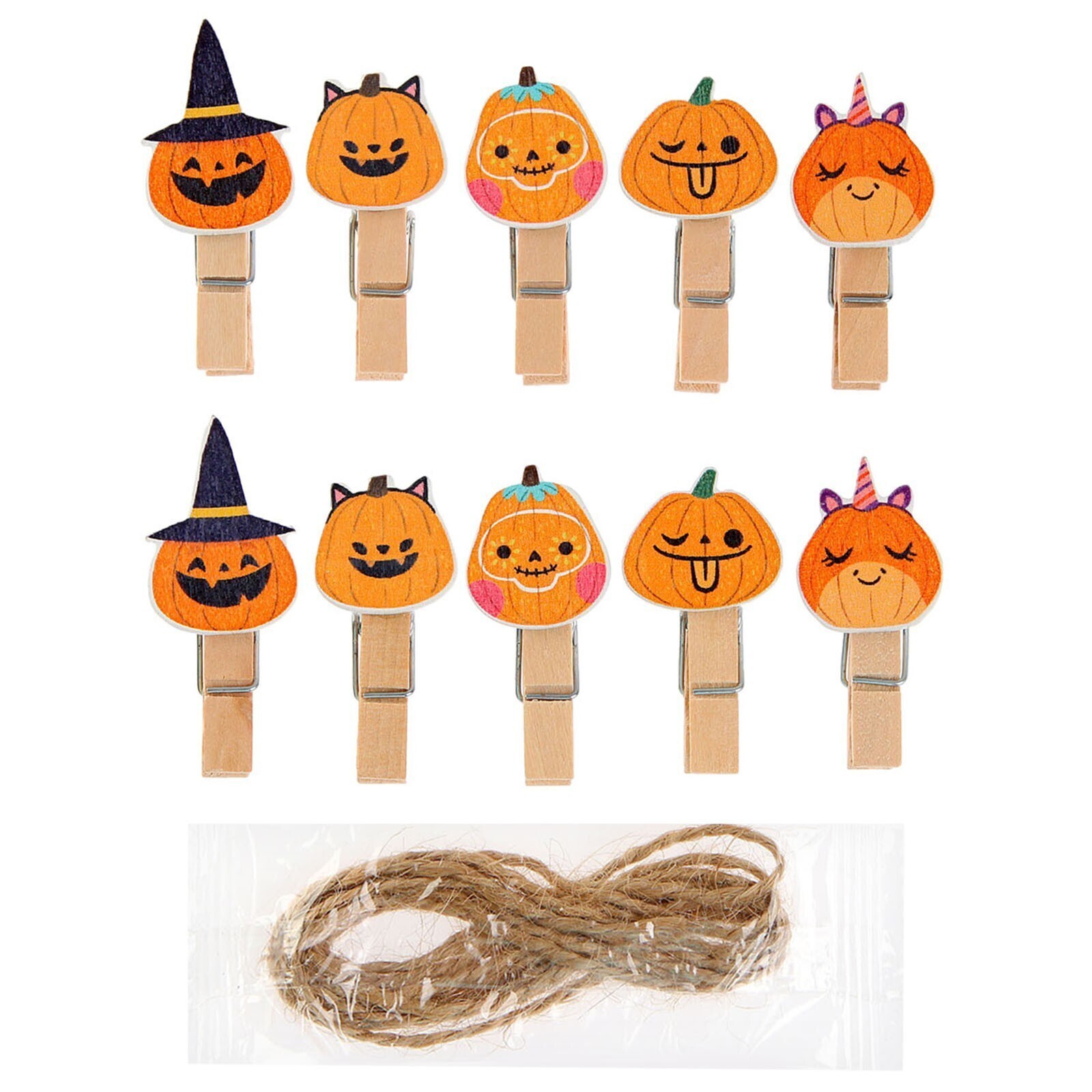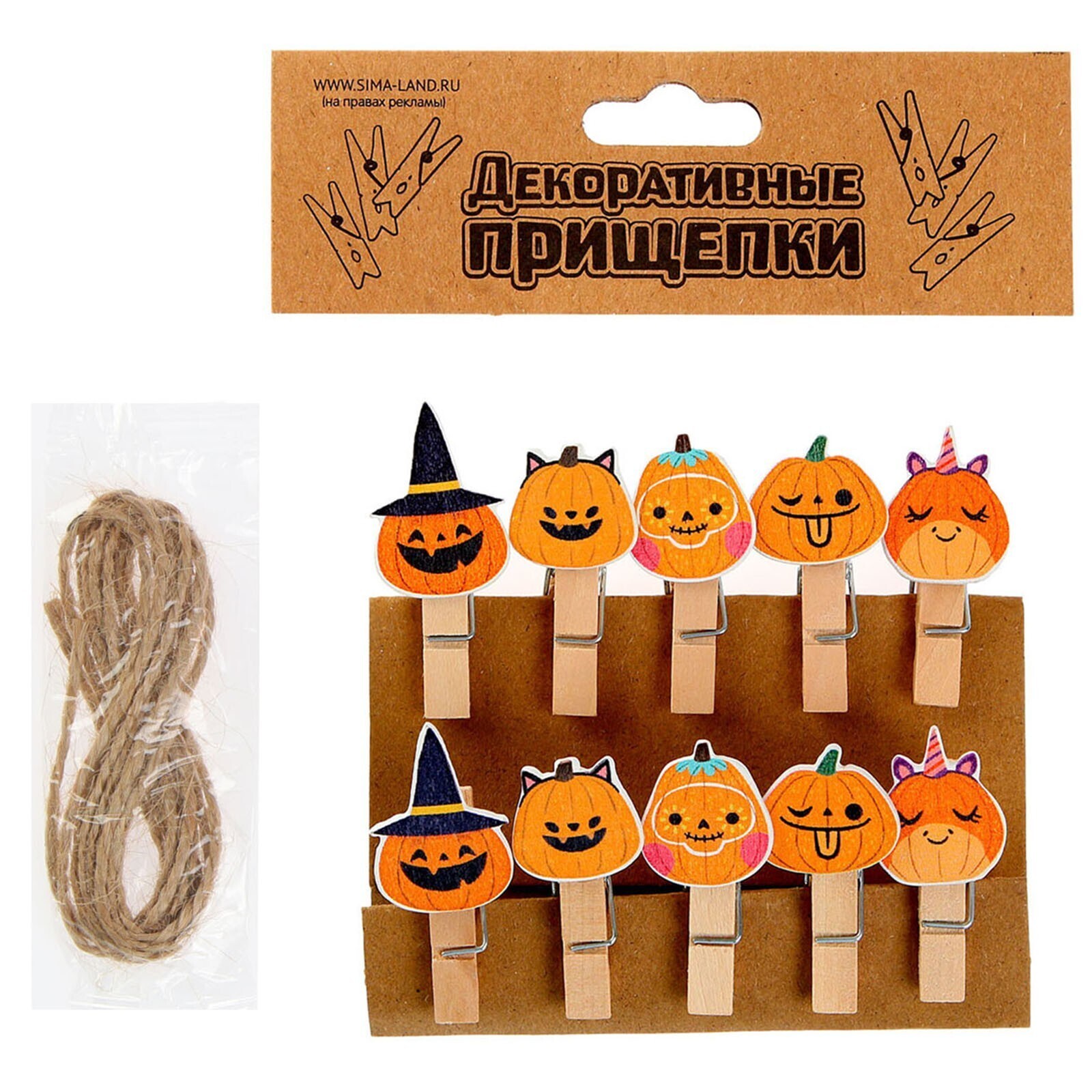 Прищепки декоративные с верёвкой для подвеса «Тыковки на хэллоуин» набор 10 шт., 1,5 × 12 × 14 см