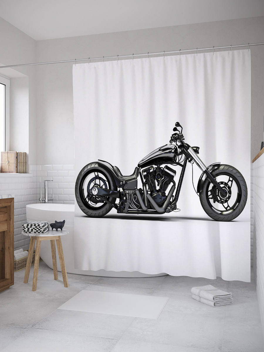 Штора (занавеска) для ванной "Байк мечты" из ткани, 180х200 см с крючками