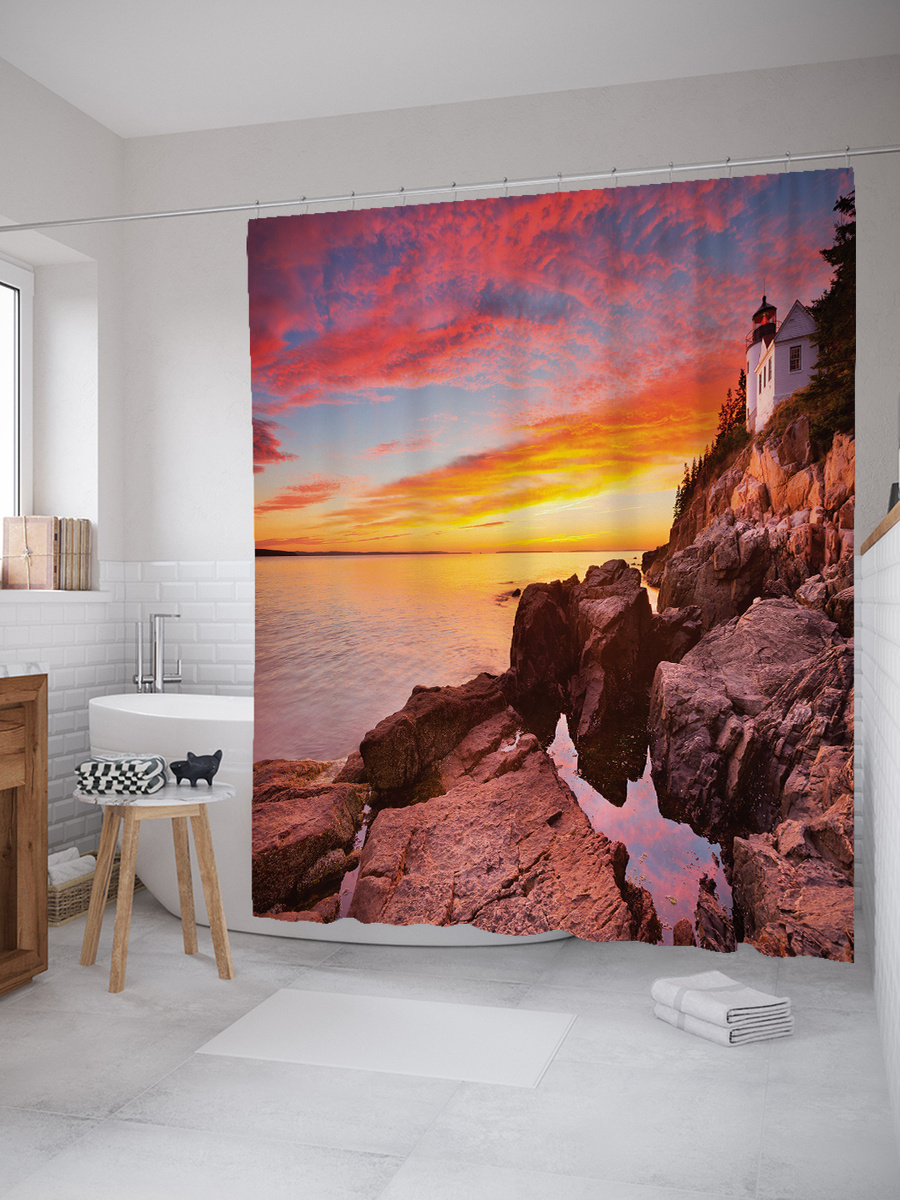 Штора (занавеска) для ванной "Морское жилье" из ткани, 180х200 см с крючками