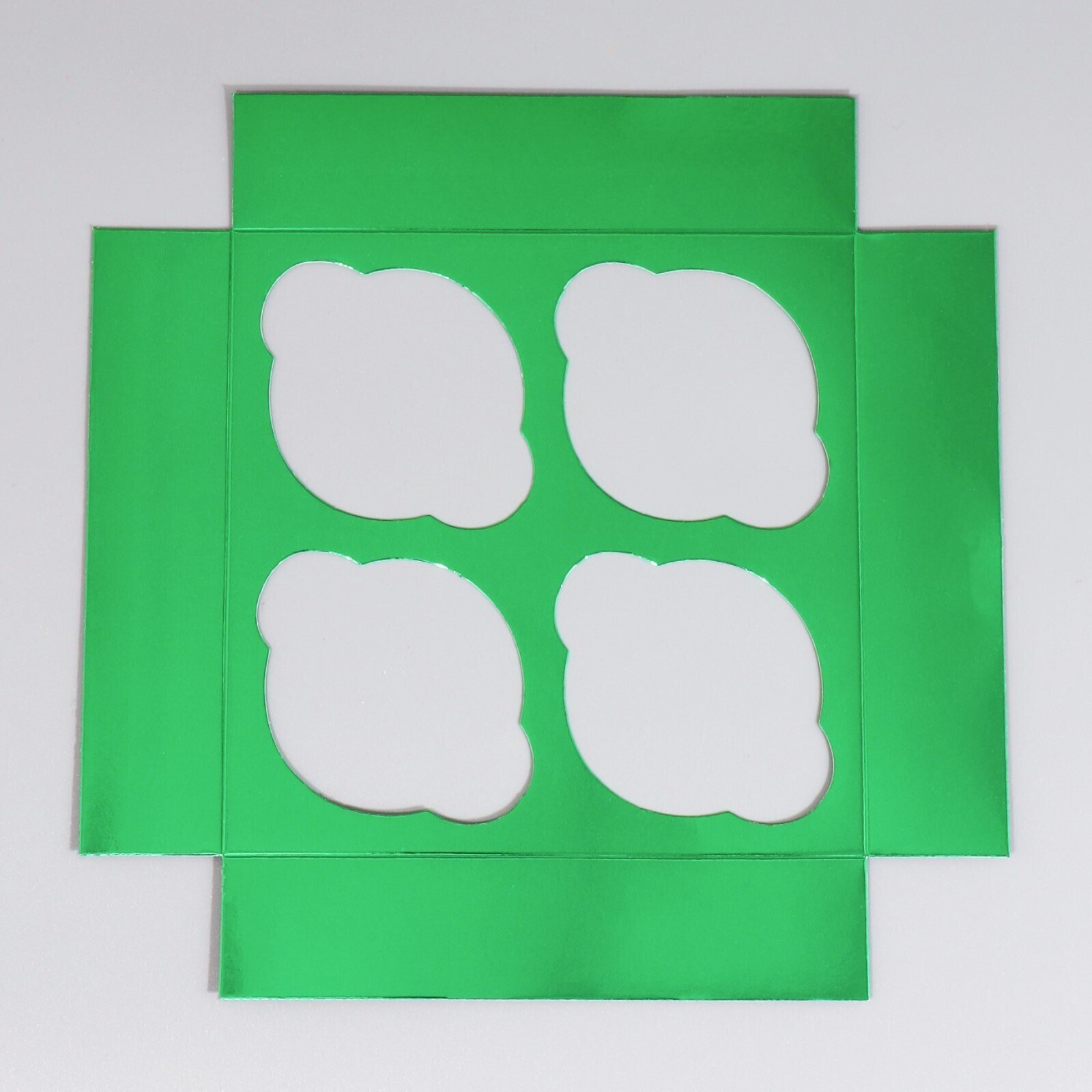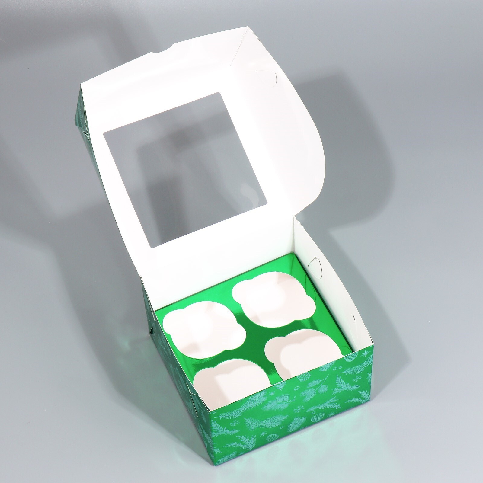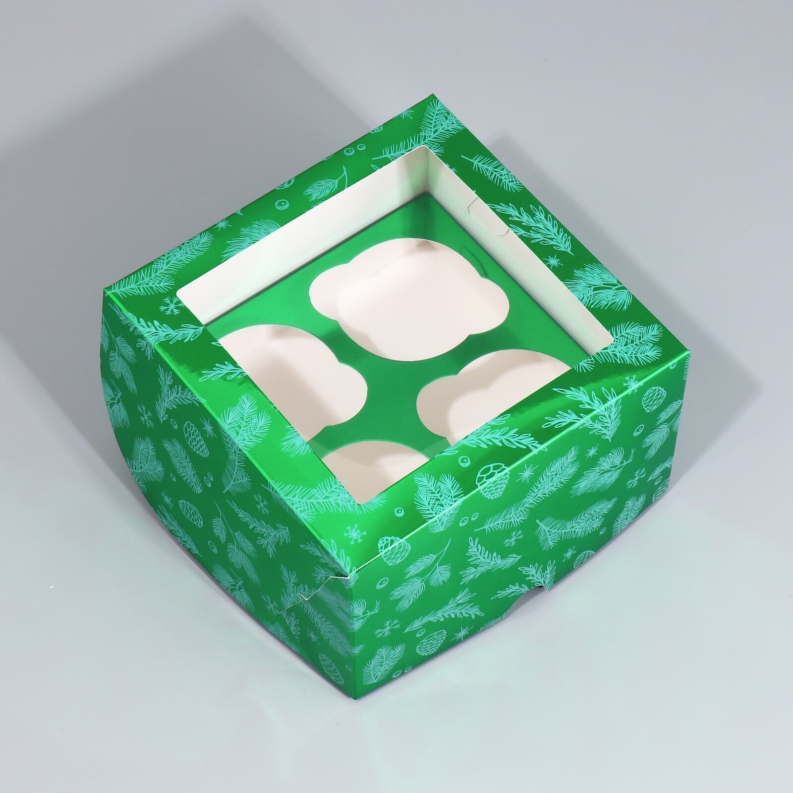 Коробка складная на 4 капкейков с окном «Веточки», 16 х 16 х 10 см