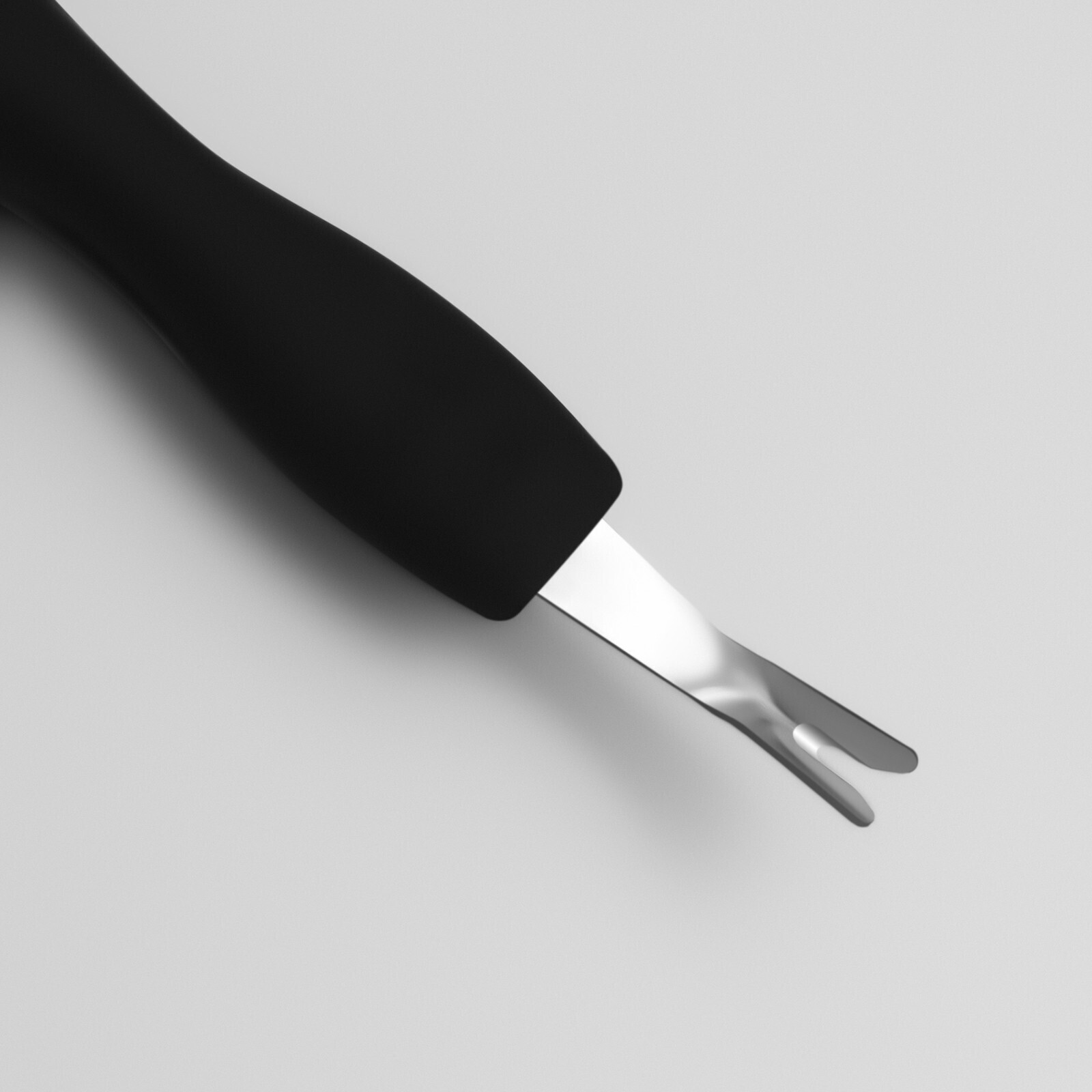 С помощью V-образной формы триммер легко приложить к краю кутикулы и под небольшим углом срезать омертвевшую ткань. Аккуратный и несложный в своем действии аксессуар придаст рукам ухоженный вид и подготовит ногтевую пластину к нанесению лака и других декоративных элементов.
