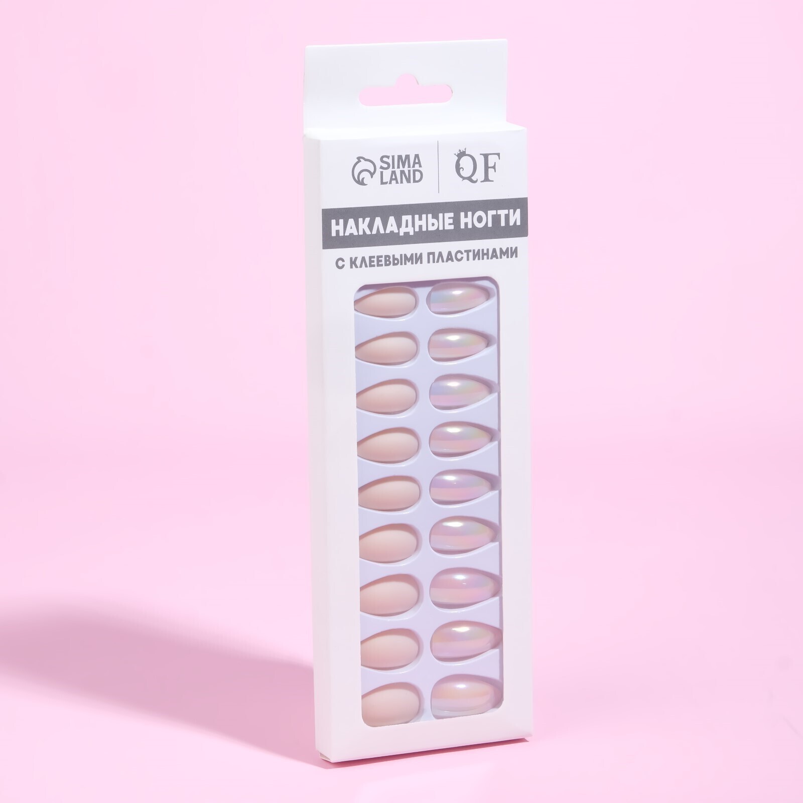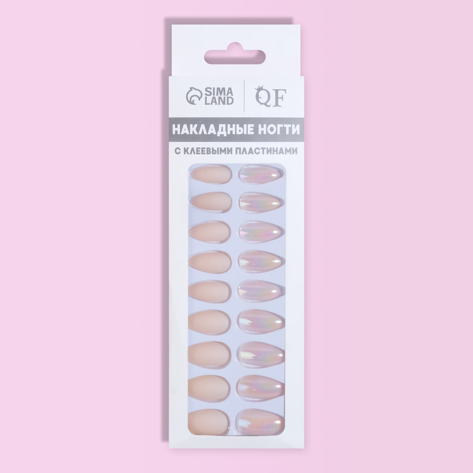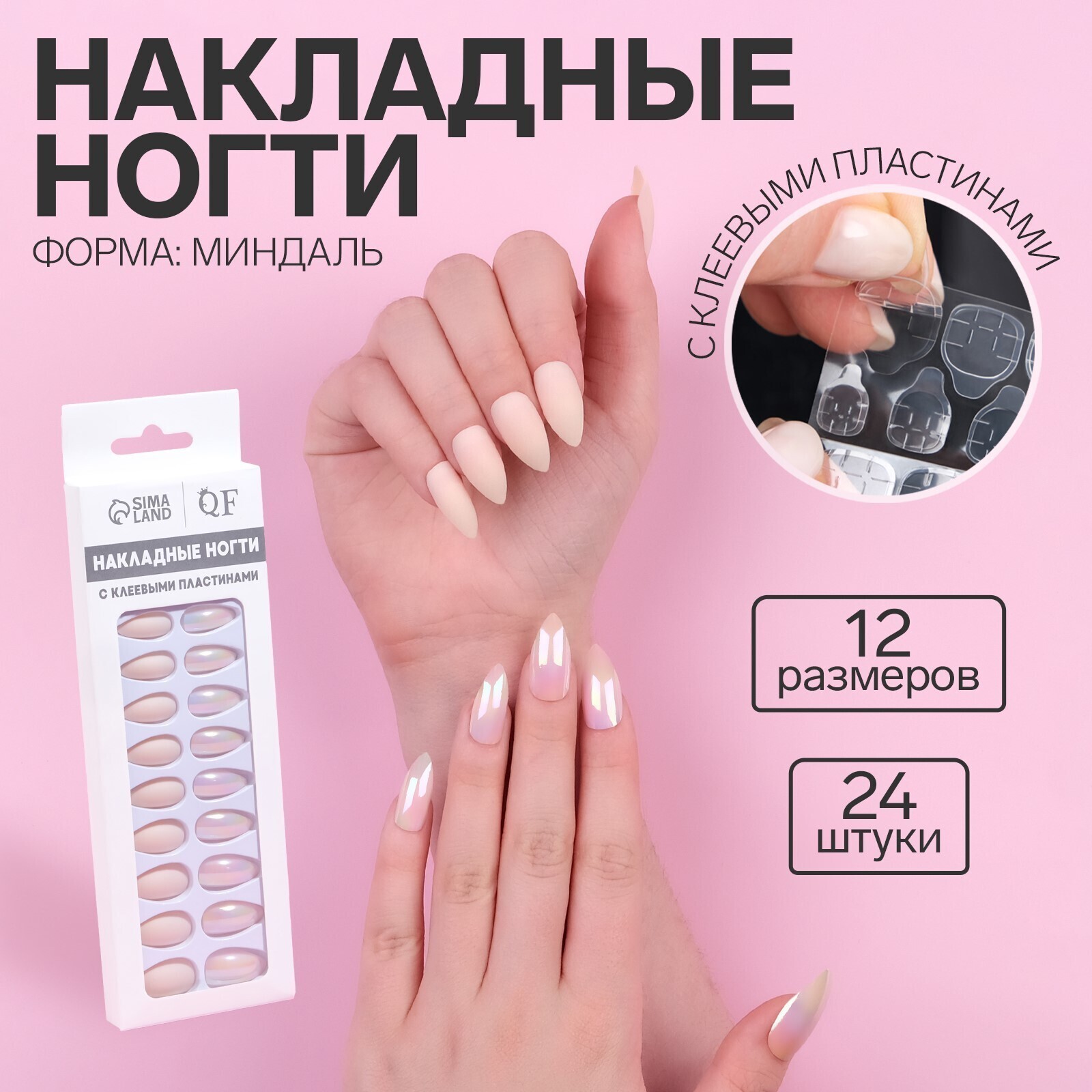 Накладные ногти, 24 шт, с клеевыми пластинами, форма миндаль, матовый/голография, цвет бежевый