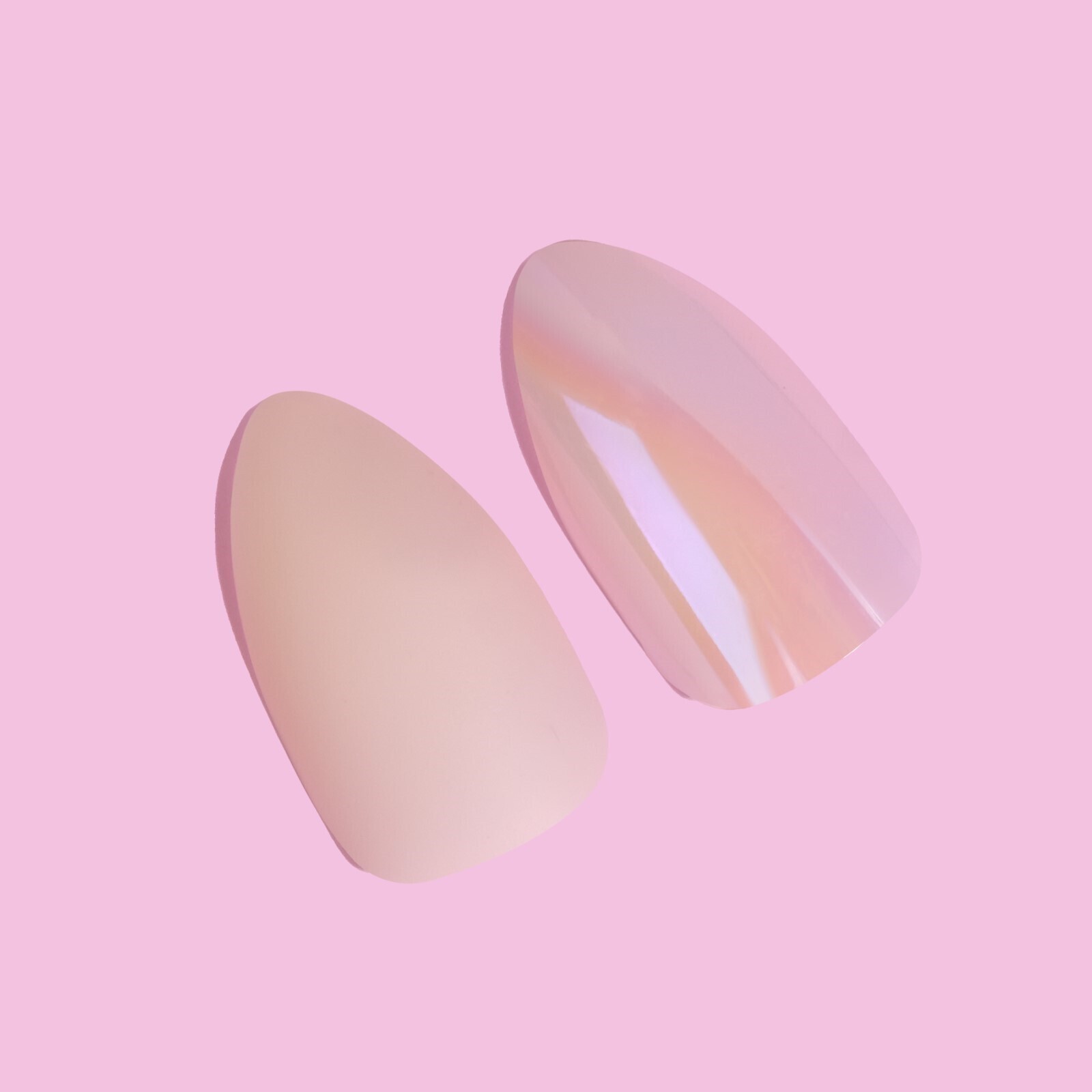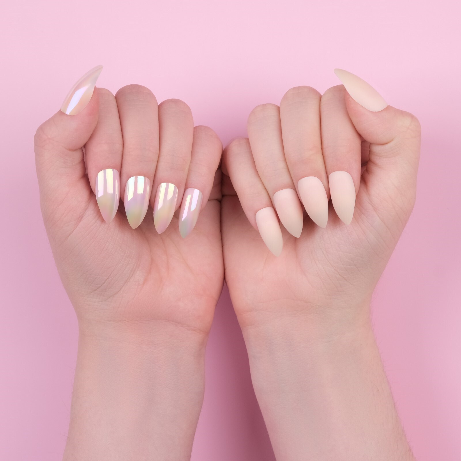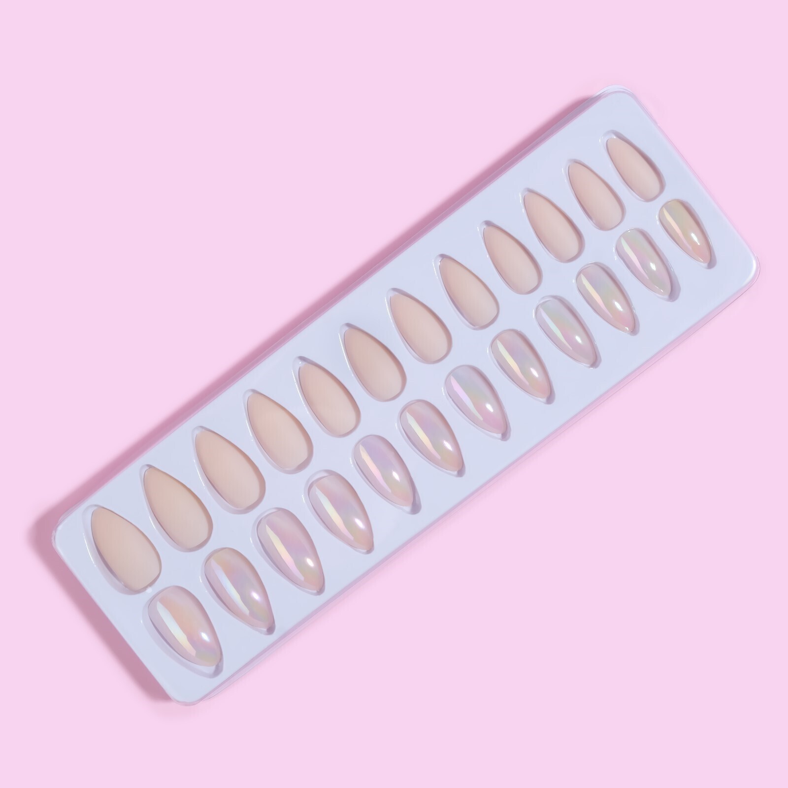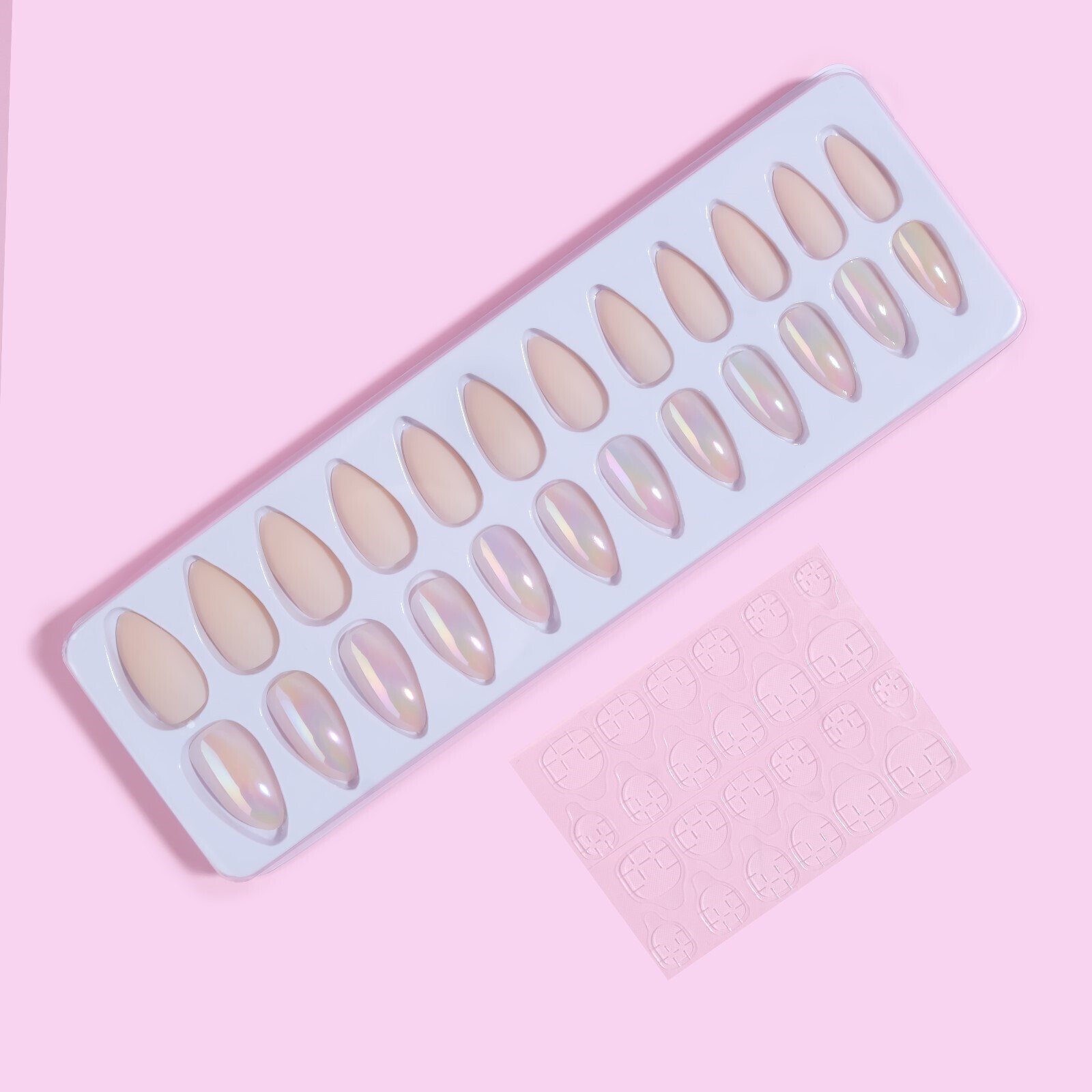 Накладные ногти, 24 шт, с клеевыми пластинами, форма миндаль, матовый/голография, цвет бежевый