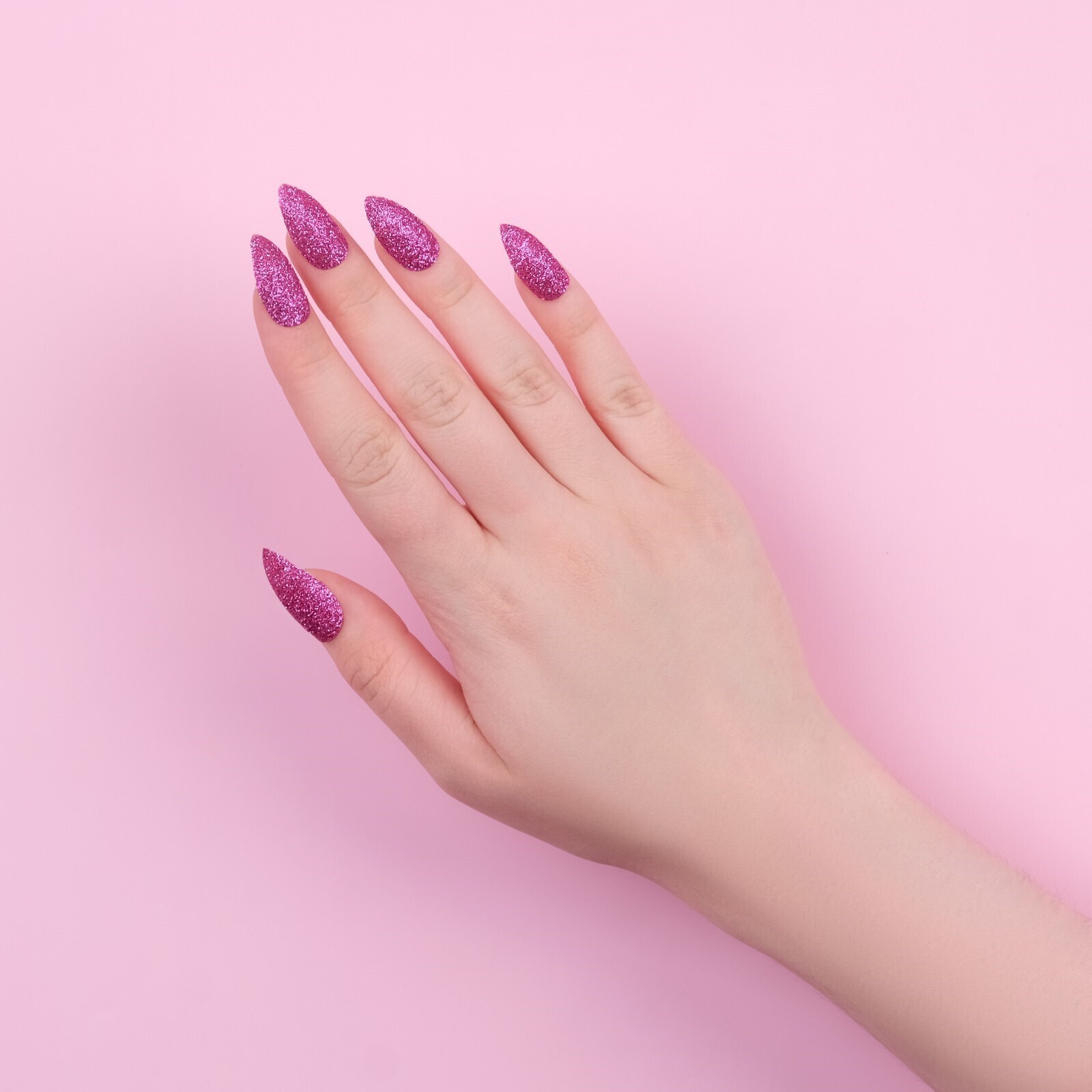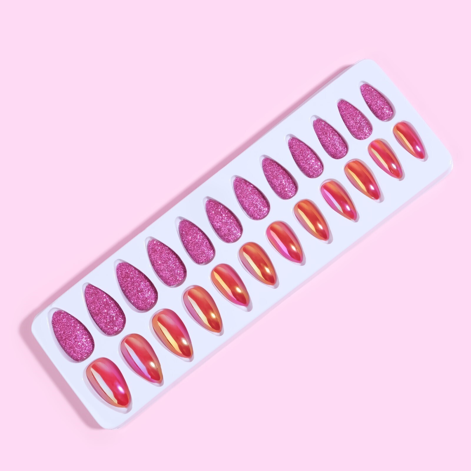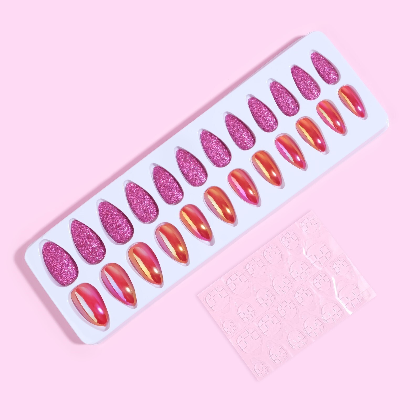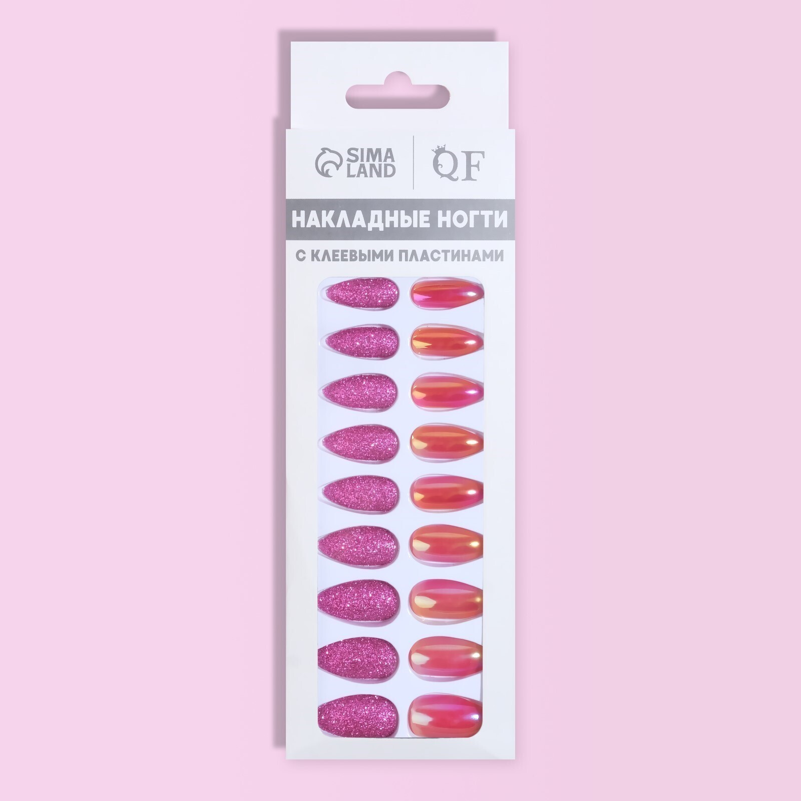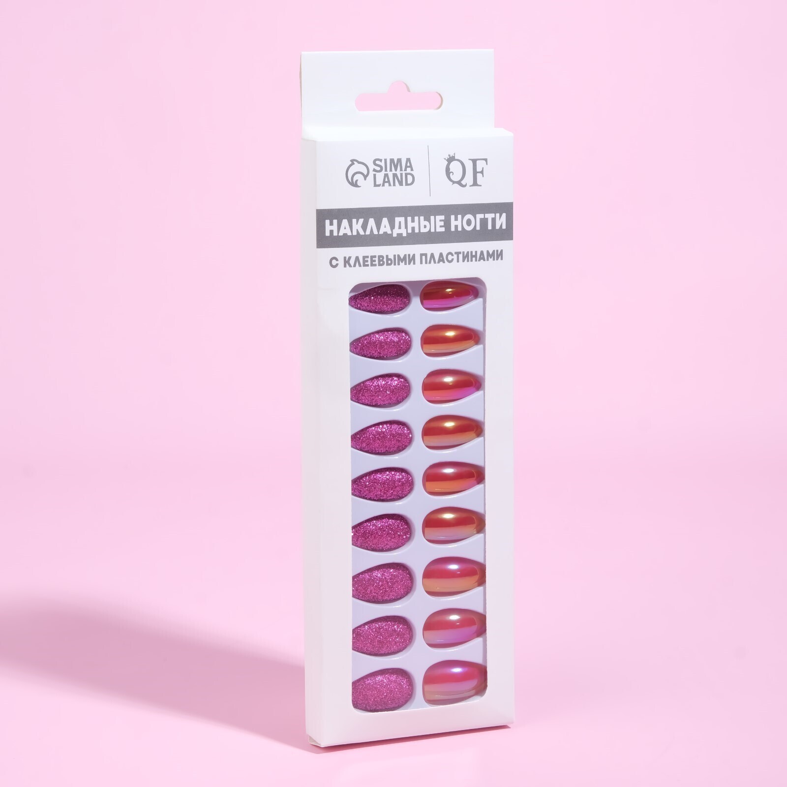 Накладные ногти, 24 шт, с клеевыми пластинами, с блёстками, форма миндаль, блёстки/голография, цвет малиновый