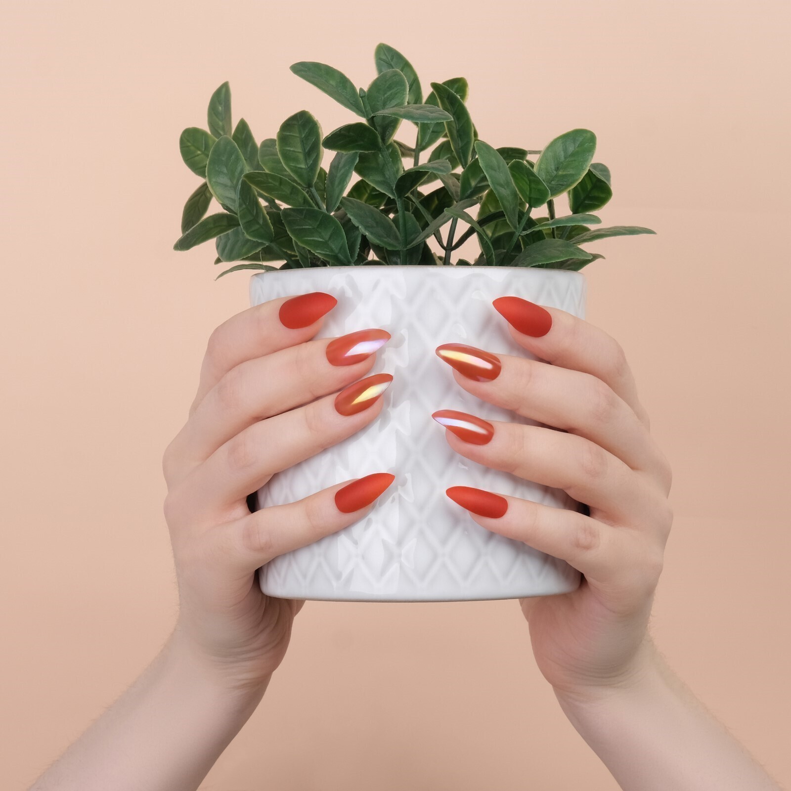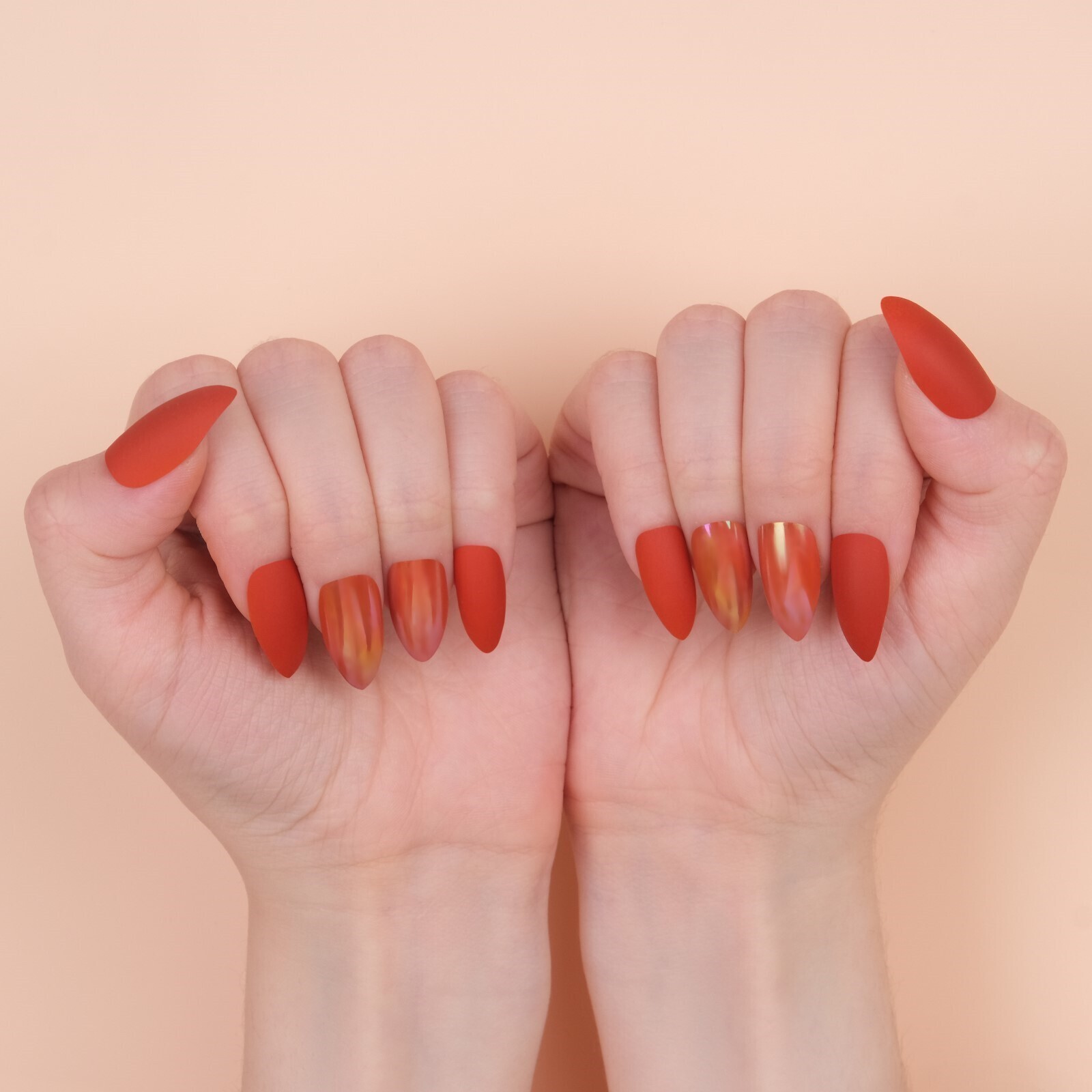 Накладные ногти, 24 шт, с клеевыми пластинами, форма миндаль, матовый/голография, цвет коралловый
