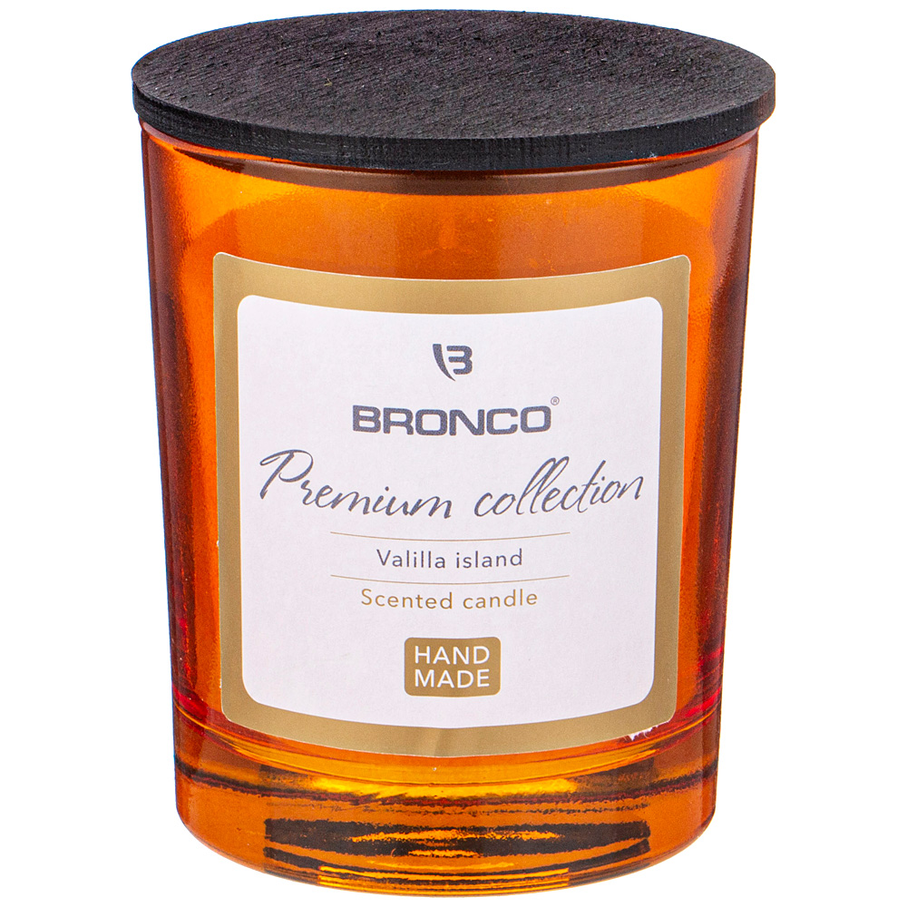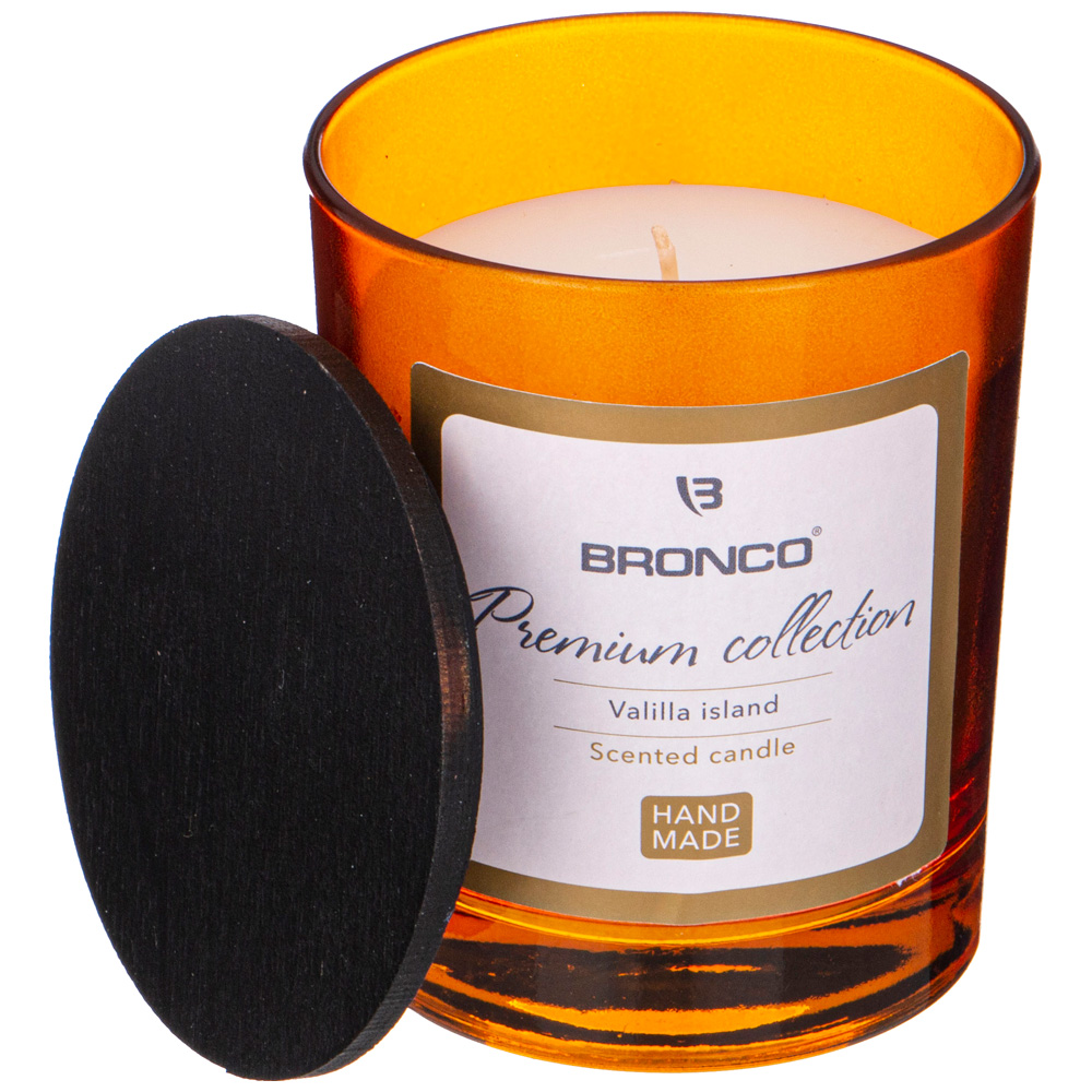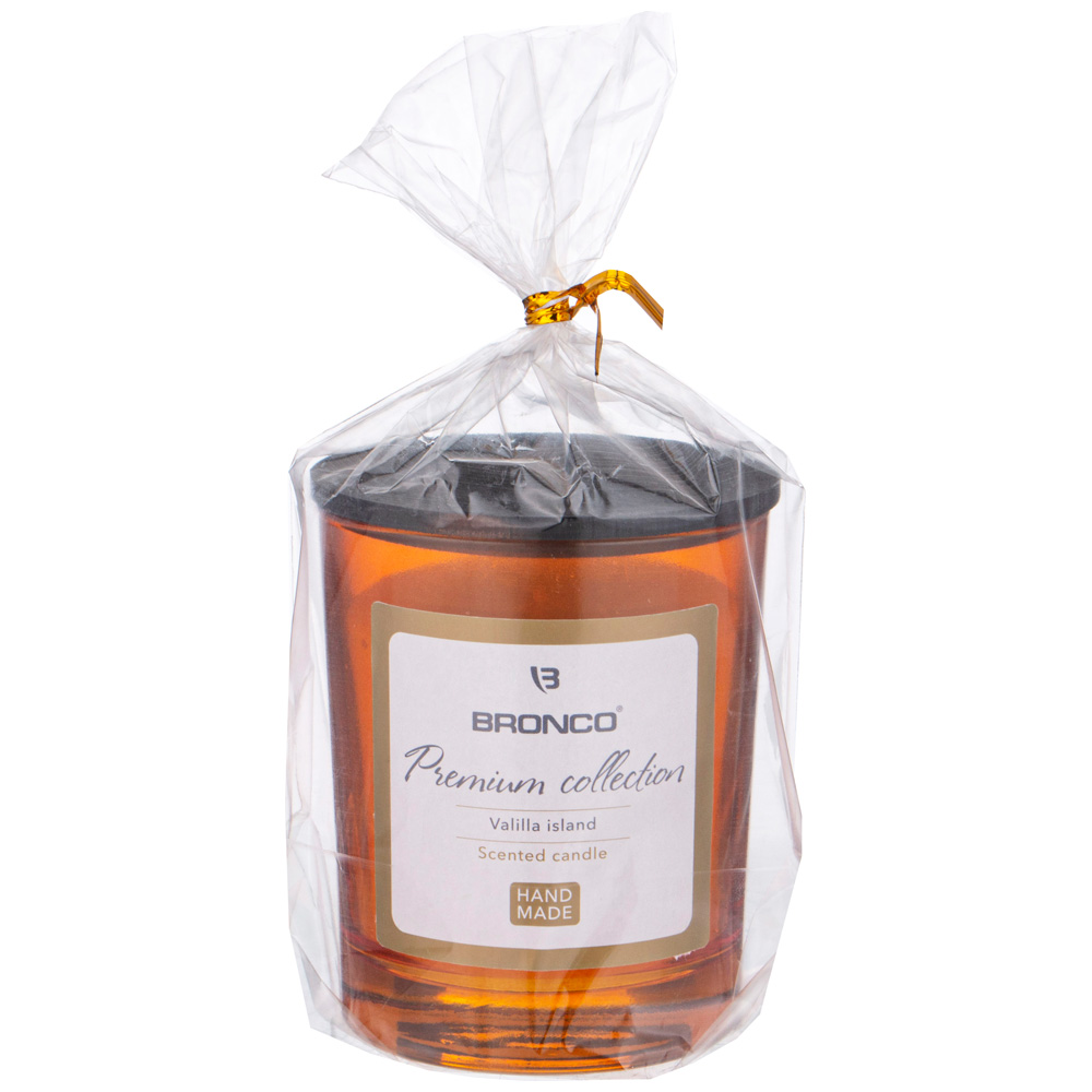 СВЕЧА BRONCO В СТАКАНЕ С КРЫШКОЙ АРОМАТИЗИРОВАННАЯ ЯНТАРНАЯ 9,5*8 СМ 315-372