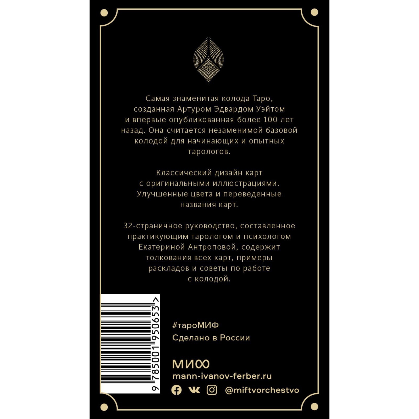 Самая знаменитая и популярная классическая колода Таро. Состоит из 78 карт и руководства с толкованием карт и раскладами. Классический дизайн карт с улучшенными цветами. Незаменимая базовая колода для начинающих и опытных тарологов.