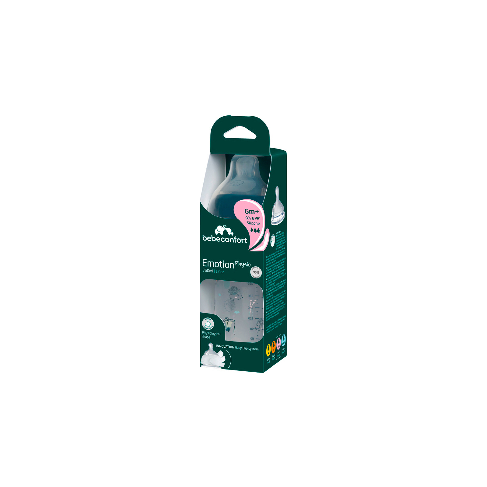 Дитяча пляшечка Bebe Confort Emotion Physio Urban Garden з силіконовою соскою унікальної фізіологічної форми - це гарантія того, що дитина майже не відчує різниці між грудним вигодовуванням і годуванням з пляшечки. Пляшечка антиколікова, оснащена подвійною системою вентиляції, яка забезпечує витік повітря з пляшечки.