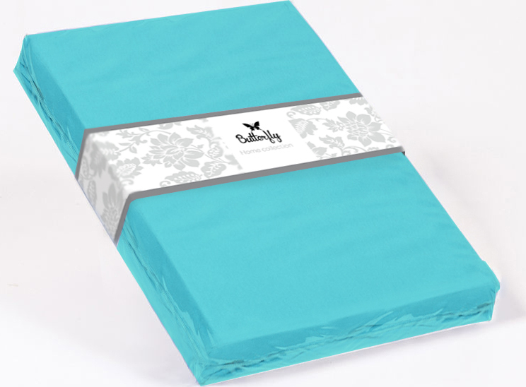 Простыня Butterfly на резинке 100% хлопок, Трикотаж, 120x200, бирюзовый